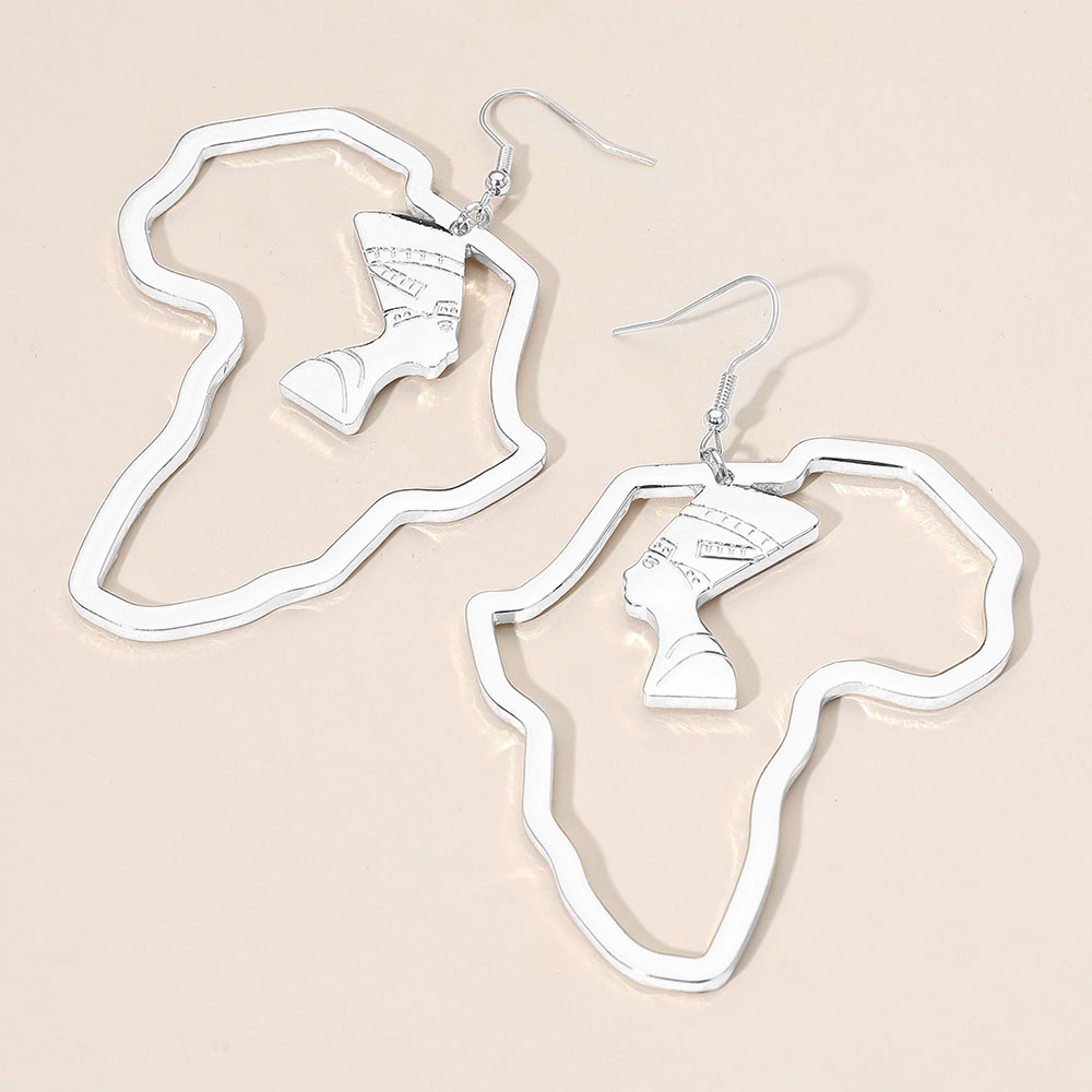 Oversized Africa Map Queen Silhouette Drop Dangle Earrings