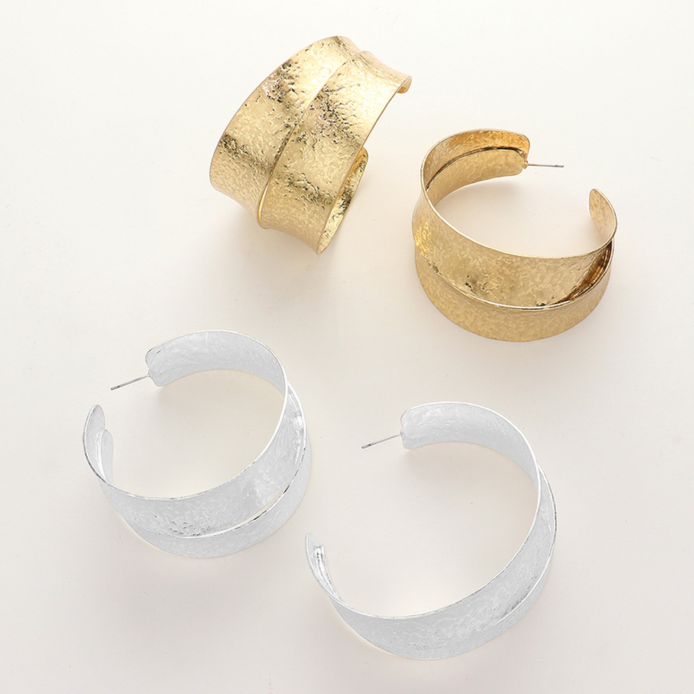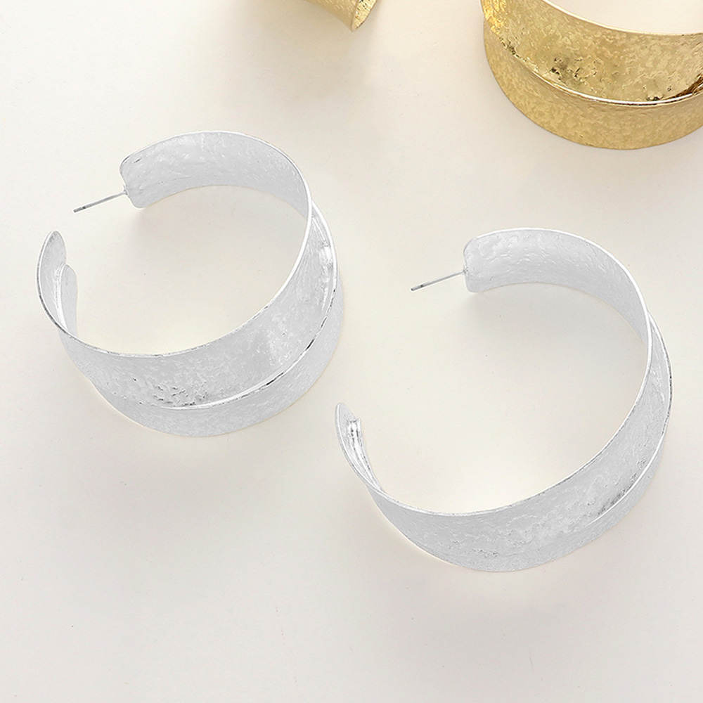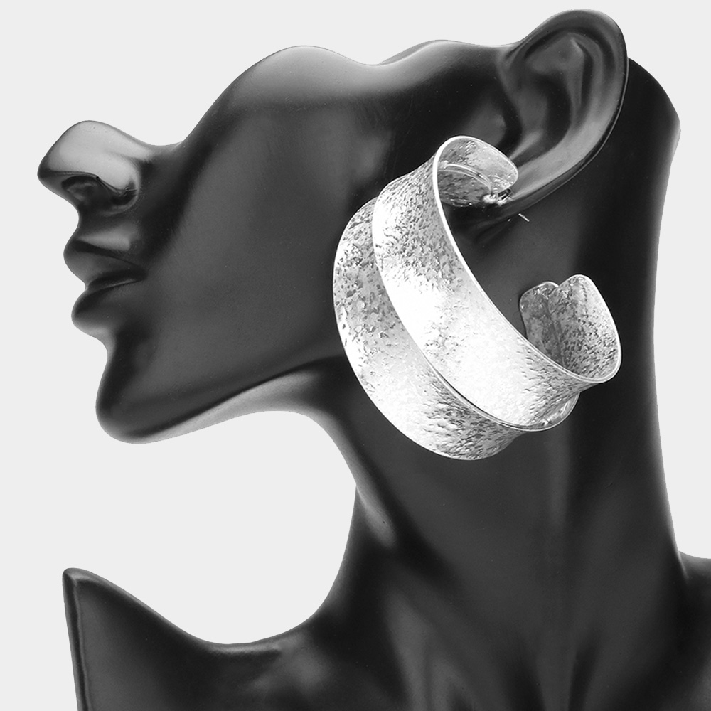 2.4 Inch Textured Metal Clip On Hoop Earrings
