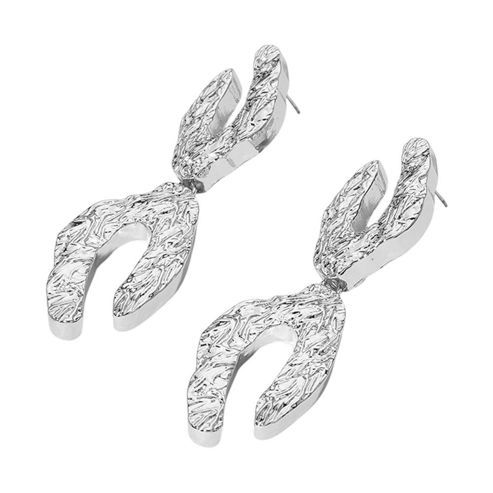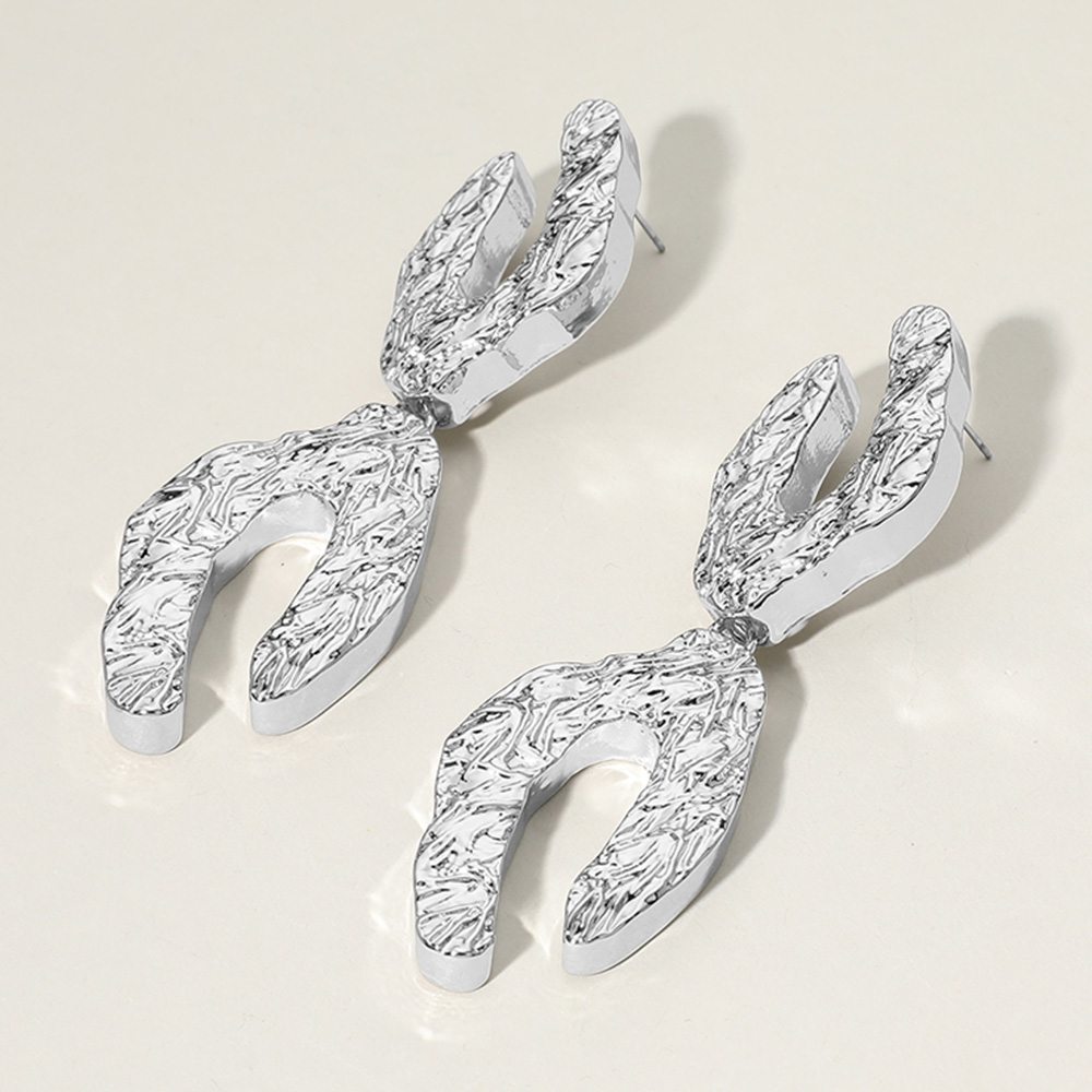Oversized Textured Abstract Metal Link Dangle Earrings