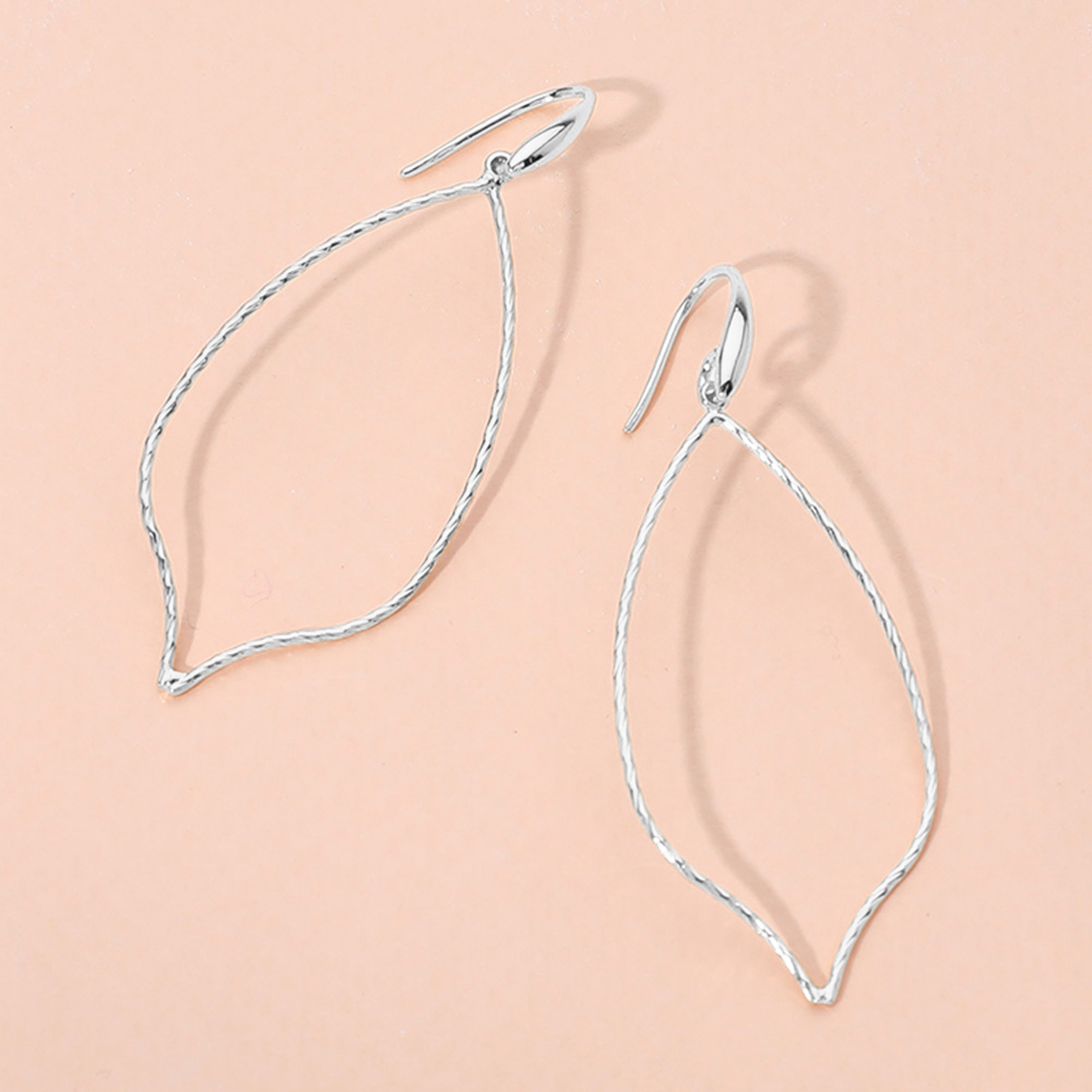 Pear Shaped Open Textured Metal Wire Dangle Earrings
