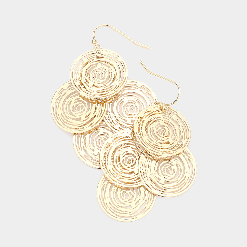 Rose Cut Out Disc Cluster Earrings