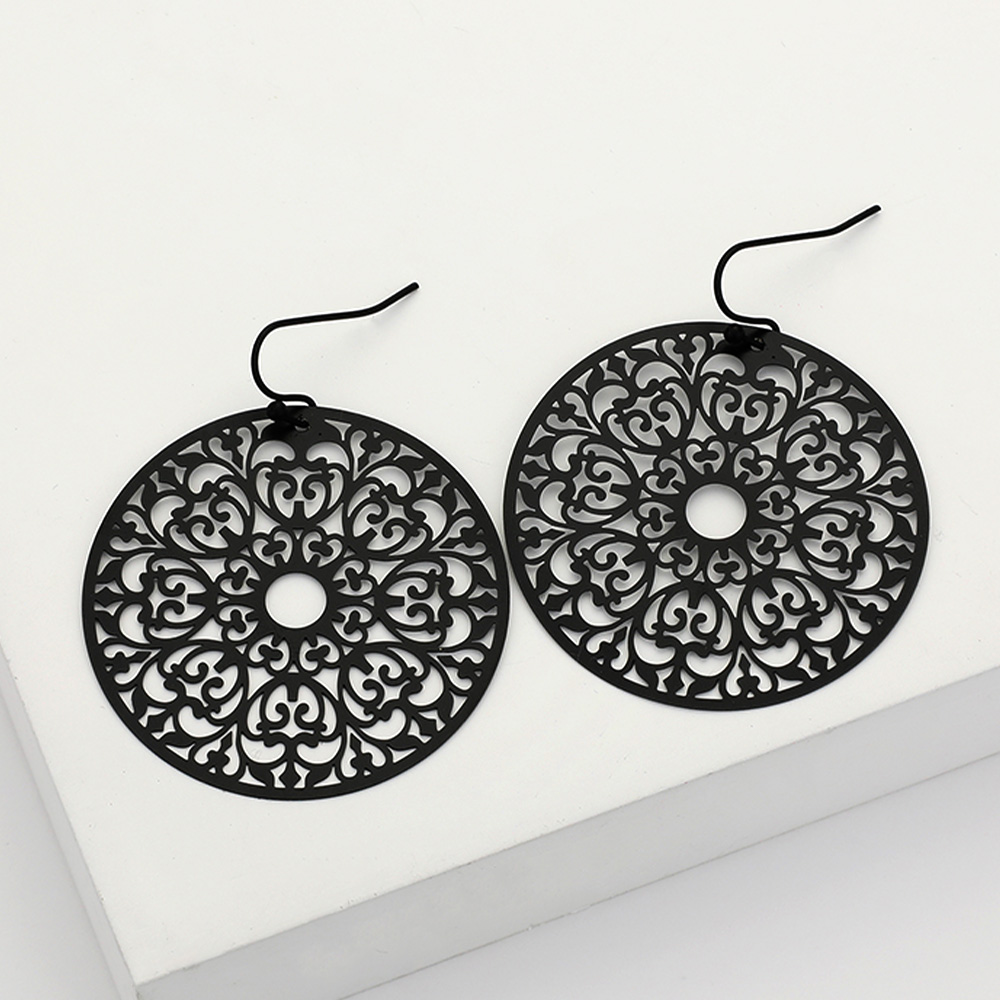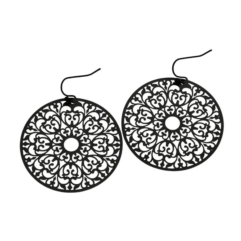 Leather Trim Filigree Metal Diamond Shaped Dangle Earrings