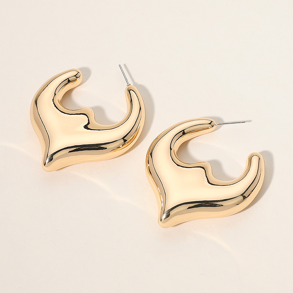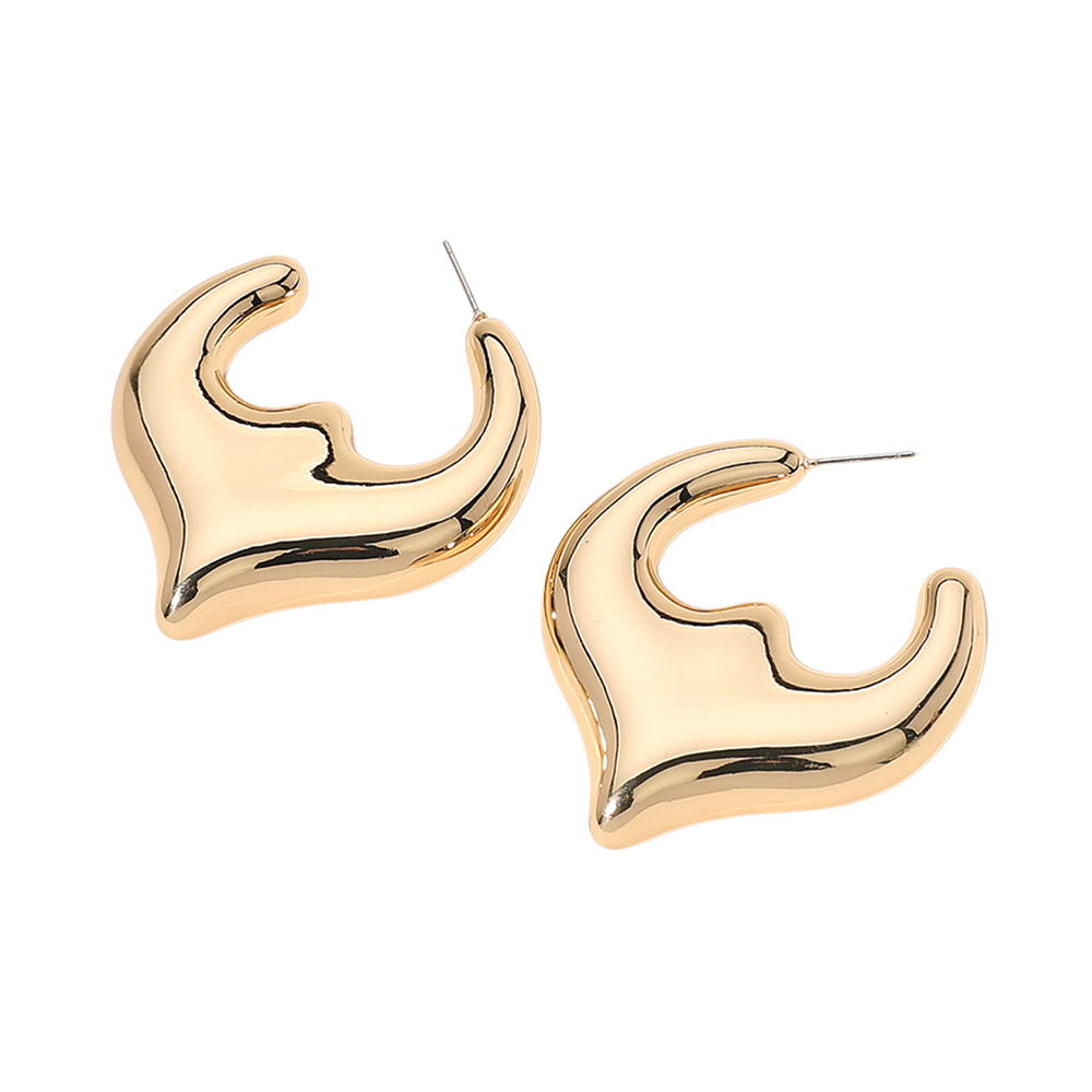 Details • Size : 1.75" X 1.75" • Post Back • Bold and modern flame-inspired hoop earrings with a unique sculpted silhouette. Lightweight and eye-catching, these statement earrings add a trendy artistic edge to both casual and dressy outfits. • Lead and Nickel Compliant