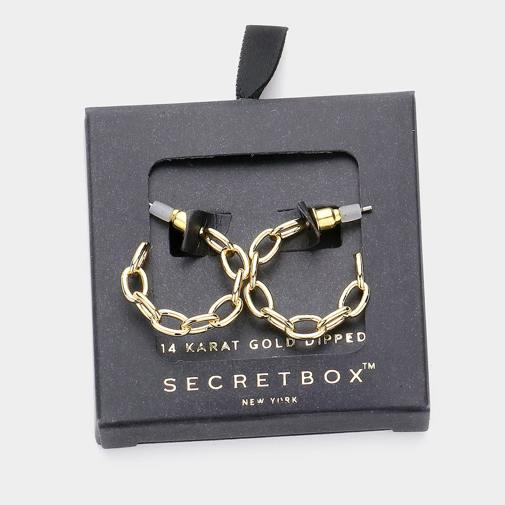 SECRET BOX_14K Gold Dipped Chain Link Hoop Earrings