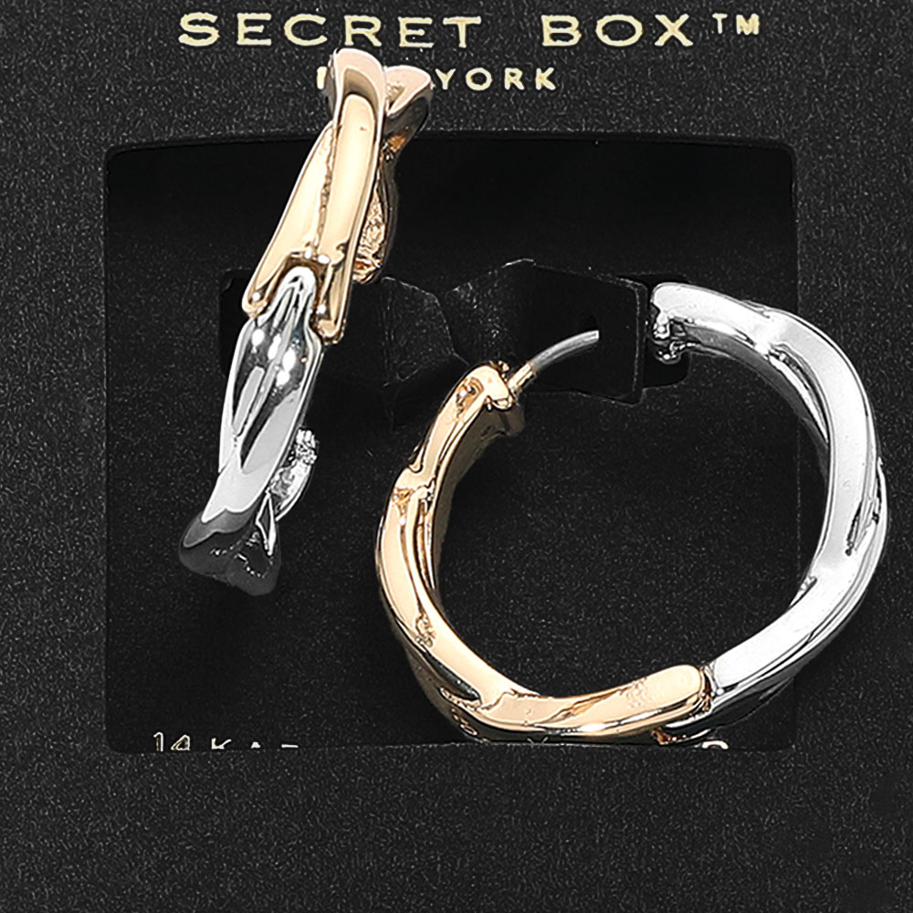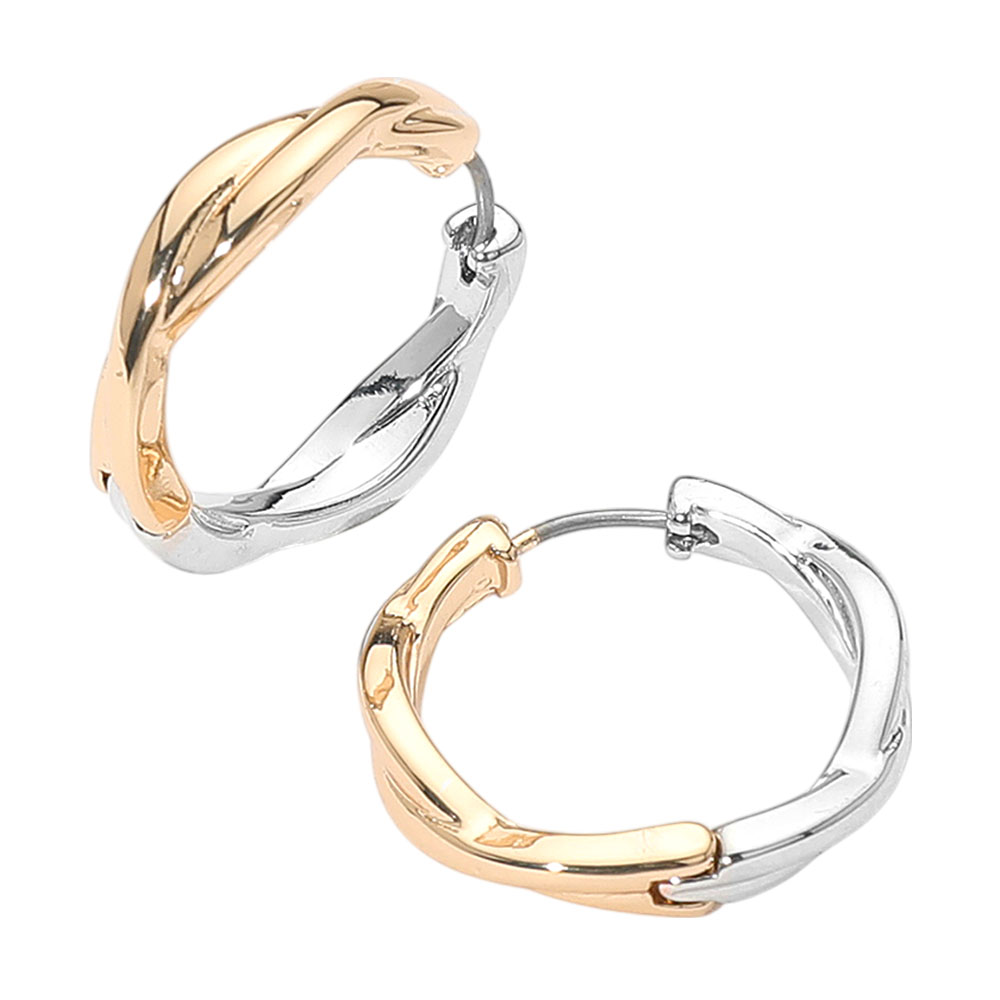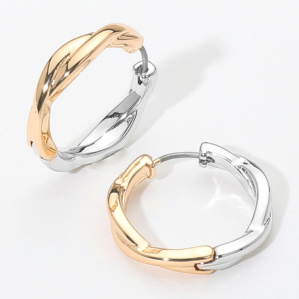 SECRET BOX_14K Gold Dipped Twisted Two Tone Huggie Hoop Earrings
