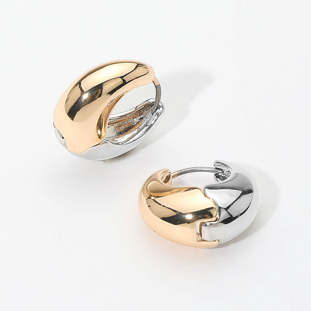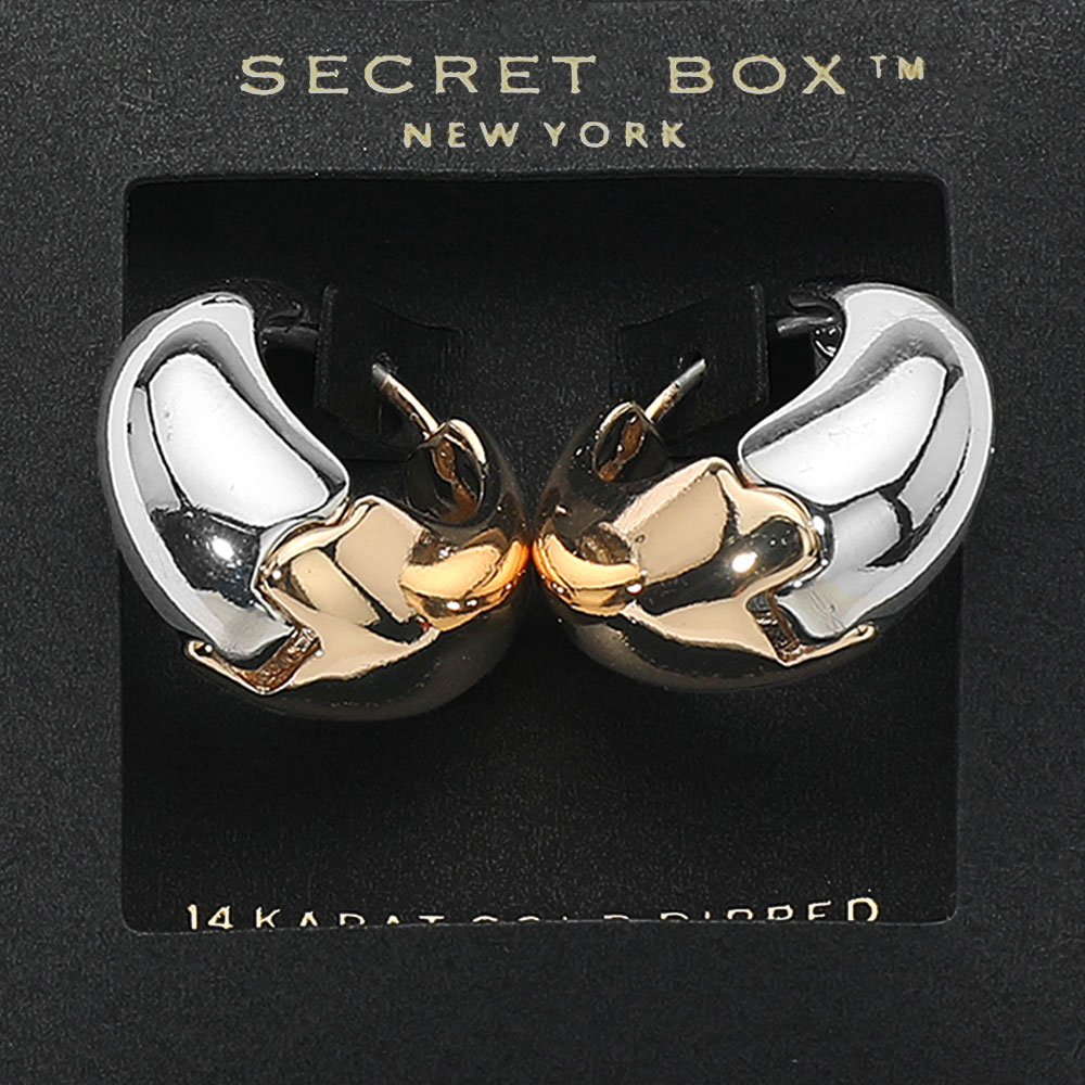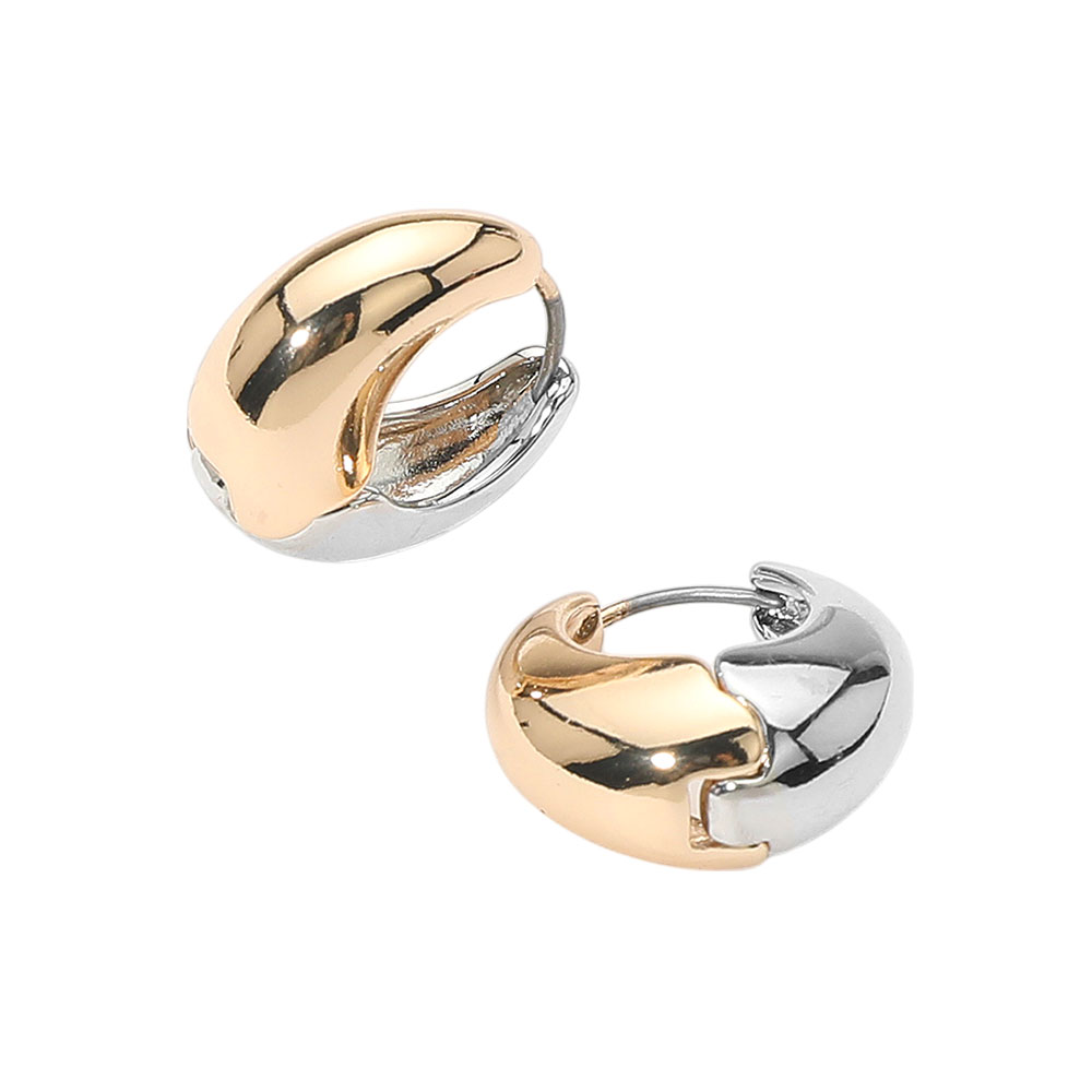 SECRET BOX_14K Gold Dipped Two Tone Huggie Hoop Earrings