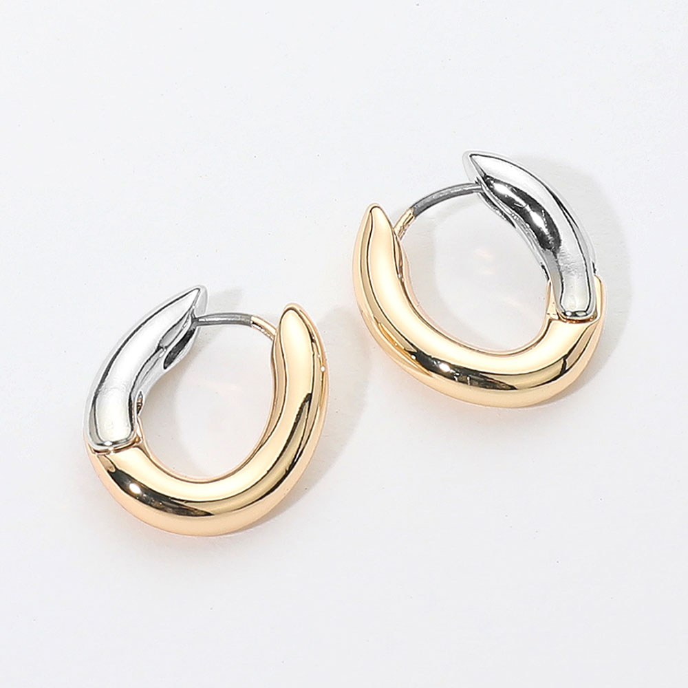 SECRET BOX_14K Gold Dipped Two Tone Mini Oval Huggie Hoop Earrings
