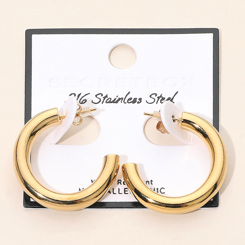 SECRET BOX_Stainless Steel Classic Thick Hoop Earrings