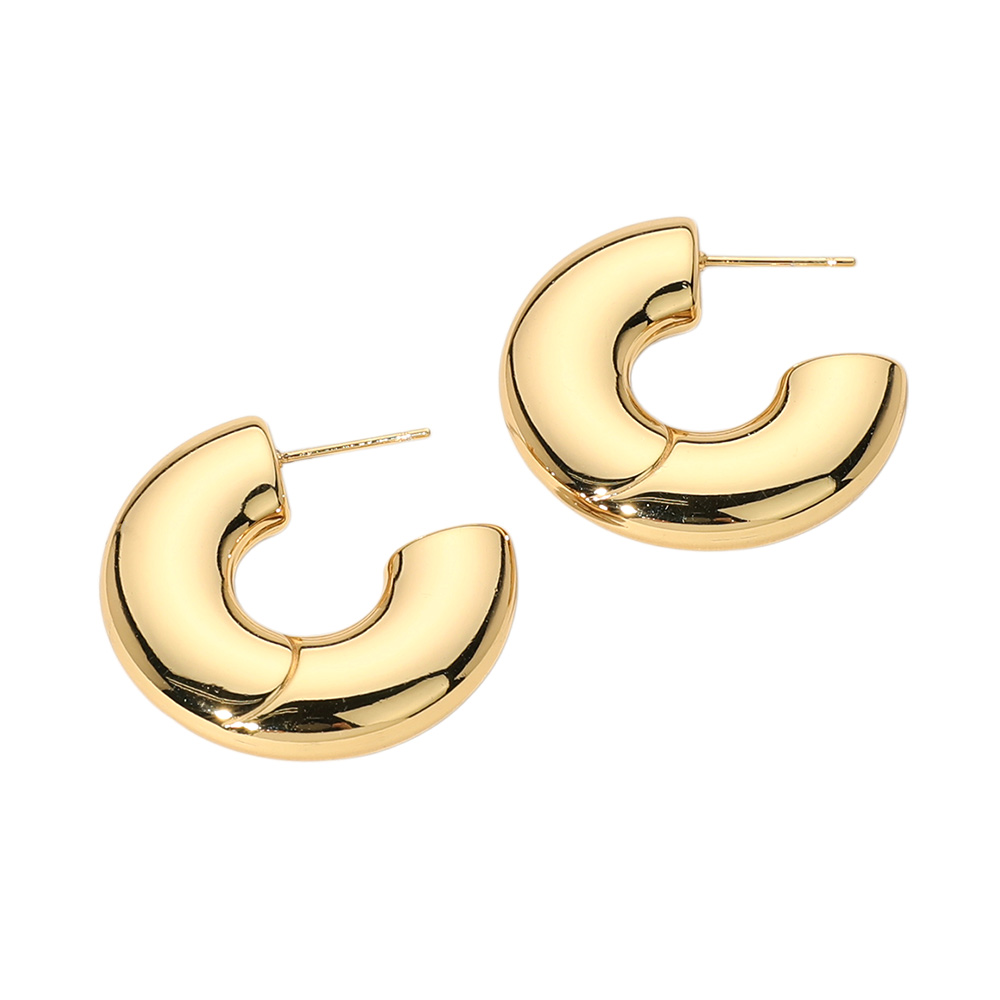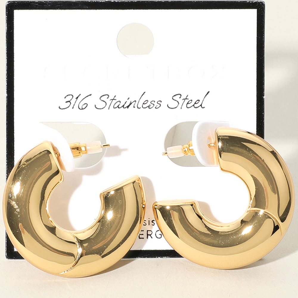 Details • Size : 1.25" X 1.25" X 0.25" • Post Back • Water Resistant • Bold open hoop earrings with a smooth, sculpted shape that adds modern sophistication to any look. These statement hoops feature a chunky silhouette perfect for elevating both casual and dressy styles, offering a chic blend of contemporary and timeless appeal. • Hypoallergenic • Stainless Steel
