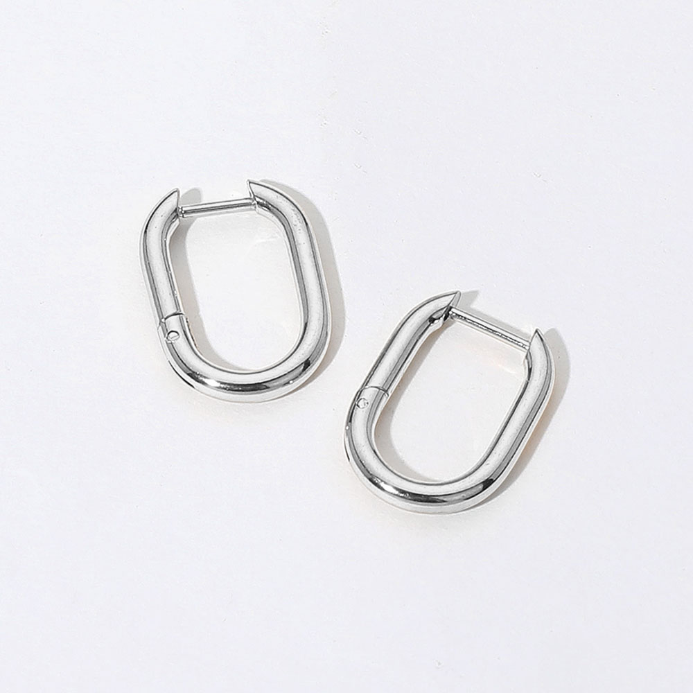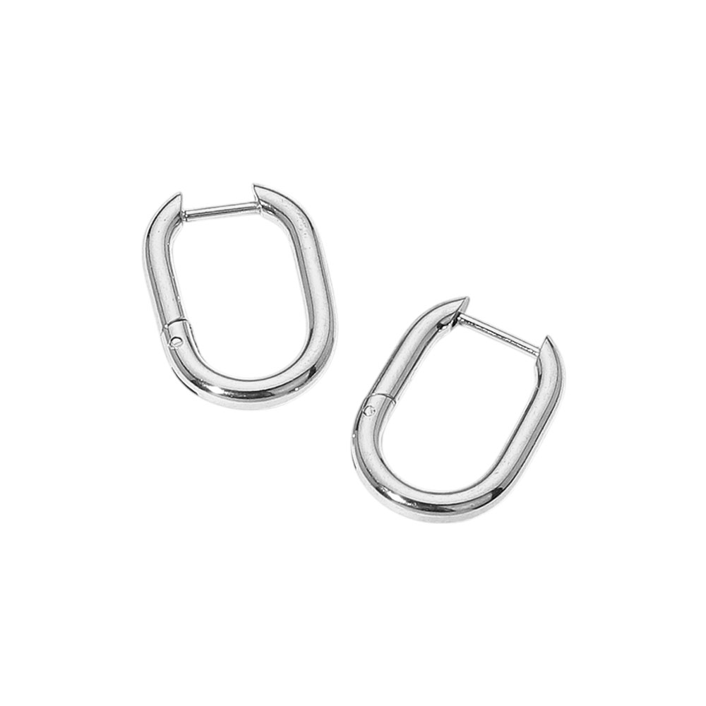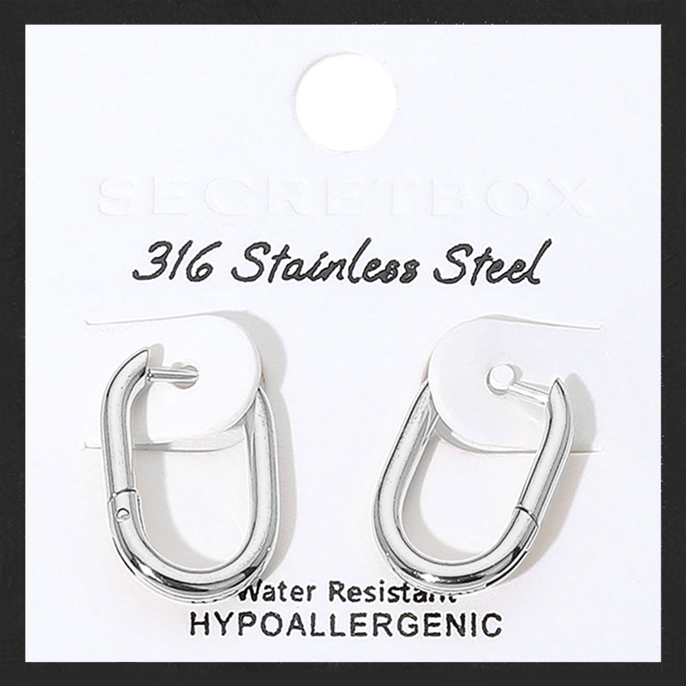 SECRET BOX_Stainless Steel Oval Huggie Hoop Earrings