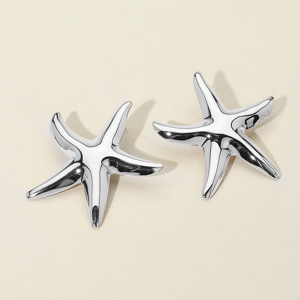 Mother of Pearl Disc Metal Starfish Dangle Earrings