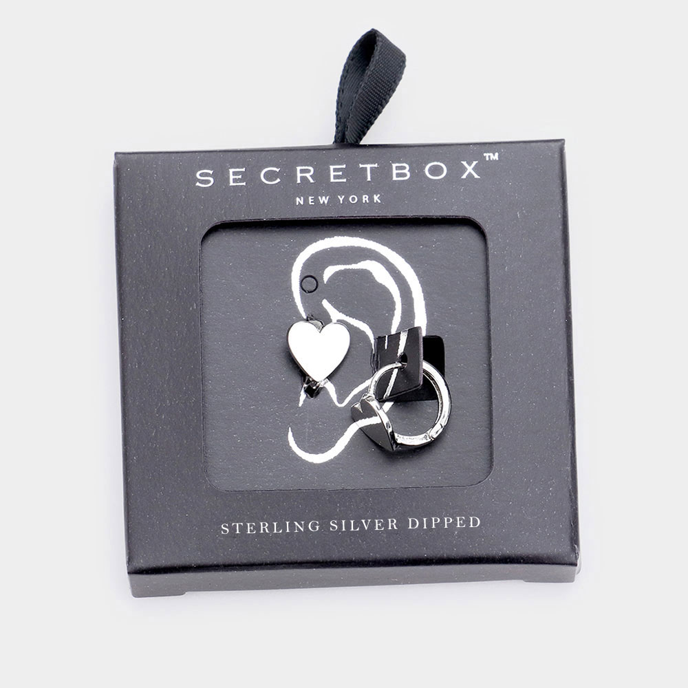 SECRET BOX_Sterling Silver Dipped Heart Huggie Hoop Earrings