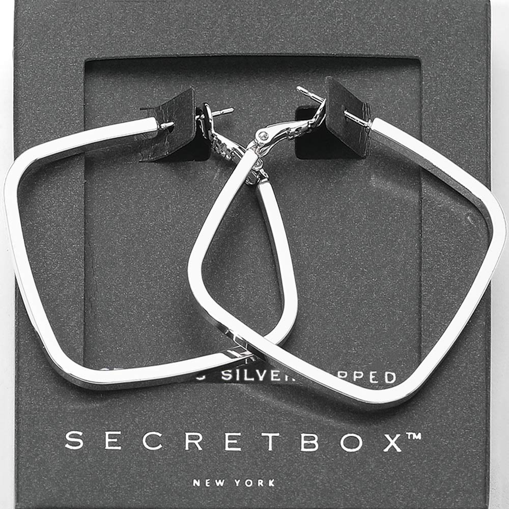 Details • Size : 1.9" X 1.9" • Omega Back • Elevate your style with these geometric hoop earrings featuring a unique open shape design. Lightweight yet bold, they offer a contemporary edge that transitions seamlessly from day to night. Perfect for adding a modern twist to casual or dressy looks. • Sterling Silver Dipped