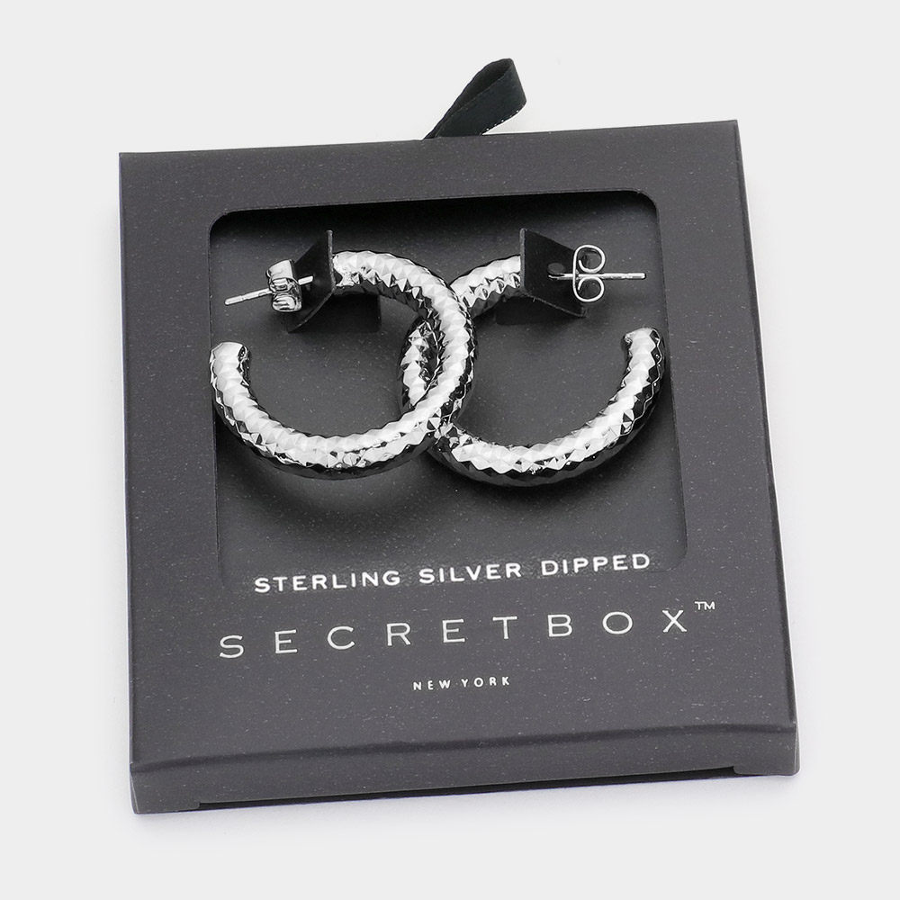 SECRET BOX_Sterling Silver Dipped Textured Metal Hoop Earrings