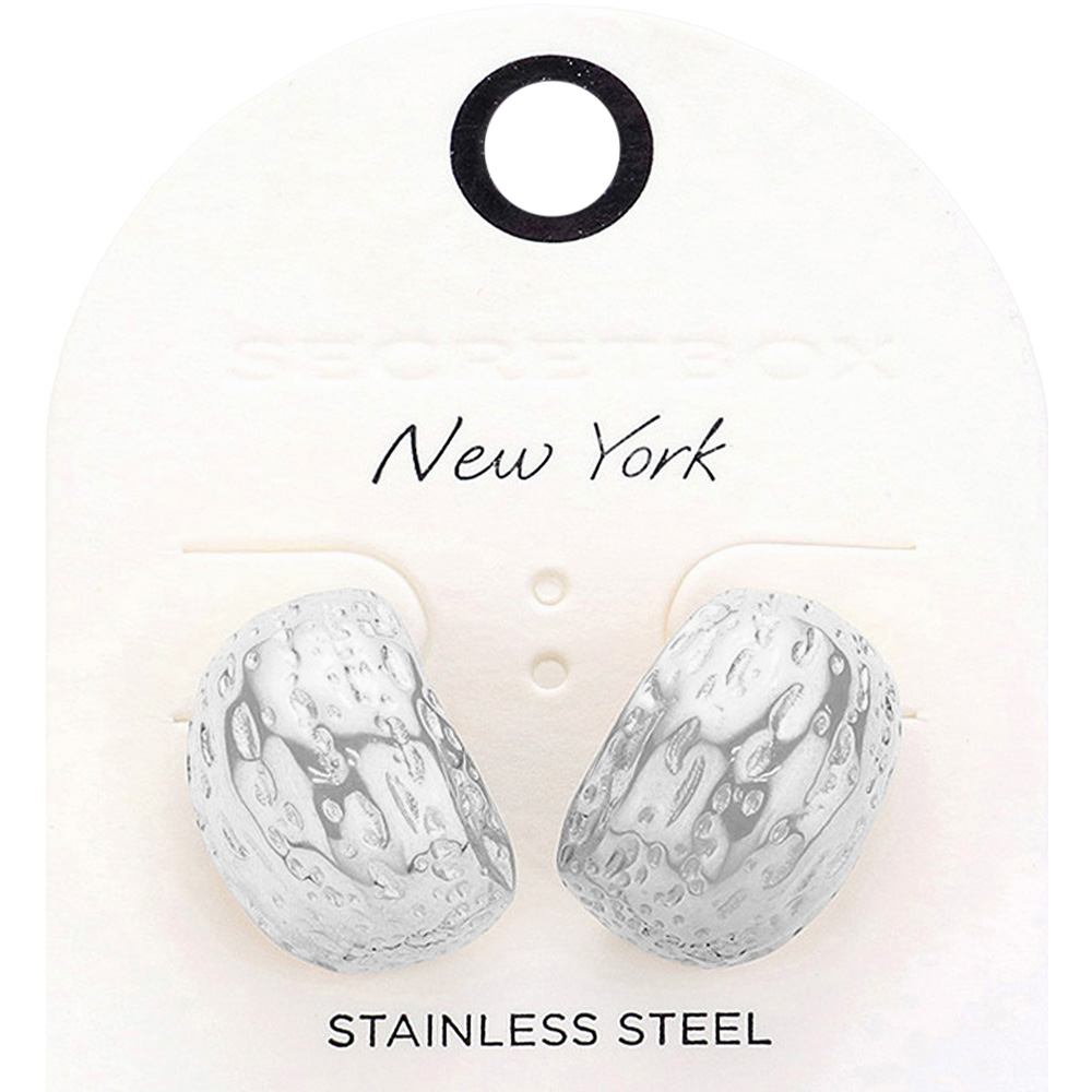 SECRET BOX_Textured Stainless Steel Half Hoop Earrings