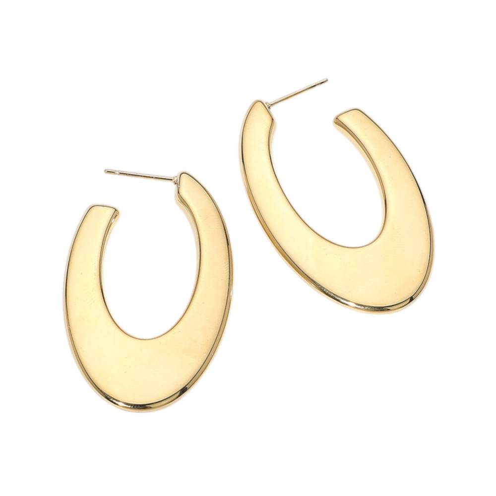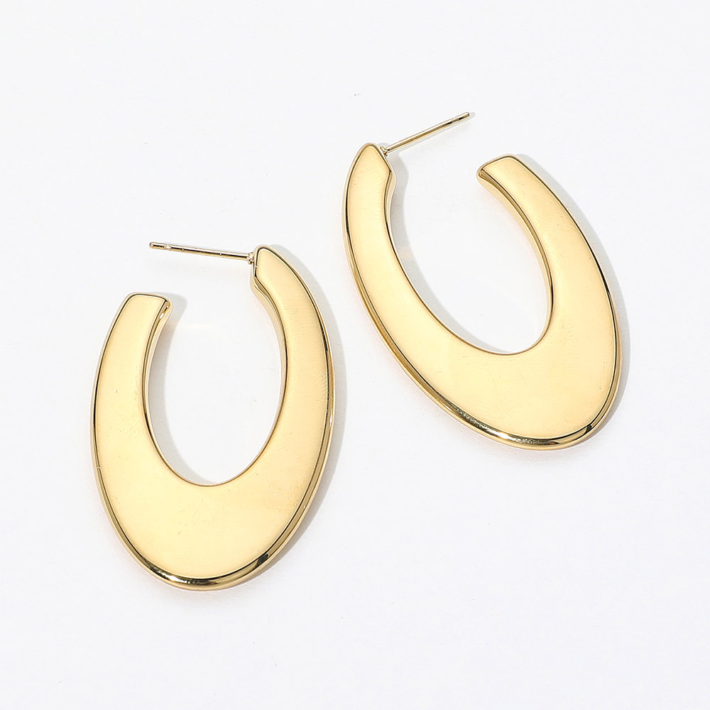 Details • Size : 1.1" X 1.9" • Post Back • Water Resistant • Contemporary oval hoop earrings crafted from 316 stainless steel. Featuring a sleek, curved silhouette, these hypoallergenic, water-resistant studs add a bold and modern statement to any look. • Hypoallergenic • Lead and Nickel Compliant