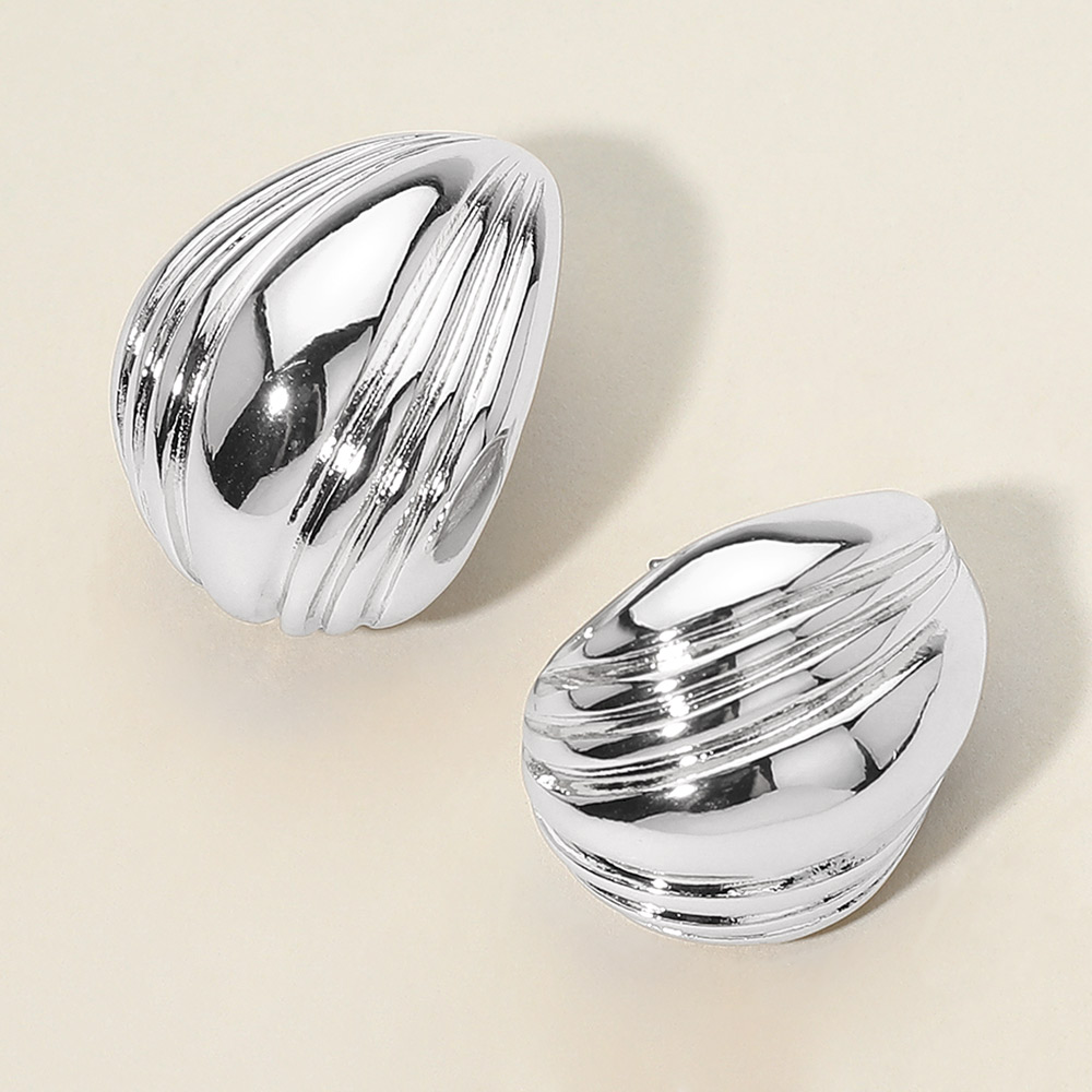 Details • Size : 1" X 1.25" • Post Back • Bold ribbed dome stud earrings featuring a smooth, polished surface with layered groove detailing. A stylish, sculptural design that adds standout shine and modern elegance, perfect for completing everyday or occasion looks. • Sterling Silver Dipped • Lead and Nickel Compliant • Made In Korea