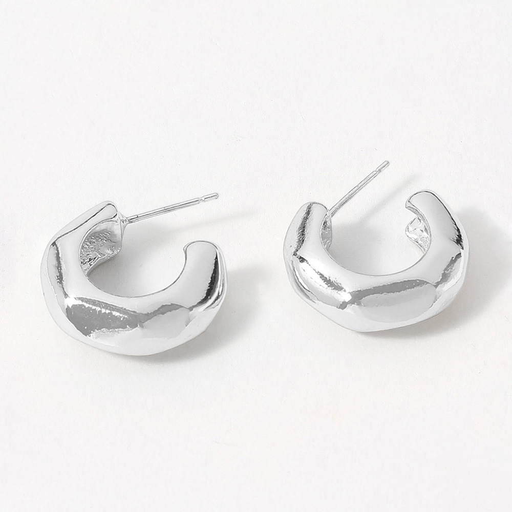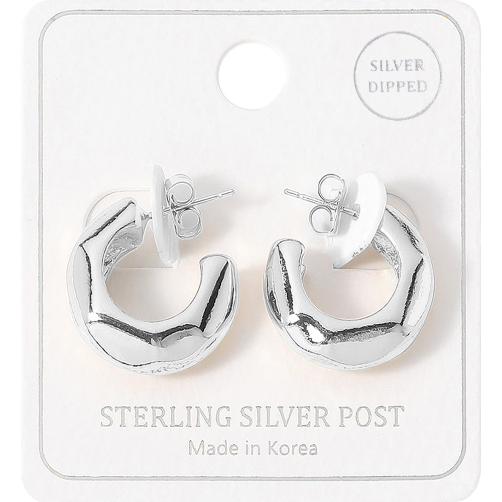 Silver Dipped Sterling Silver Post Chunky Mini Hoop Earrings