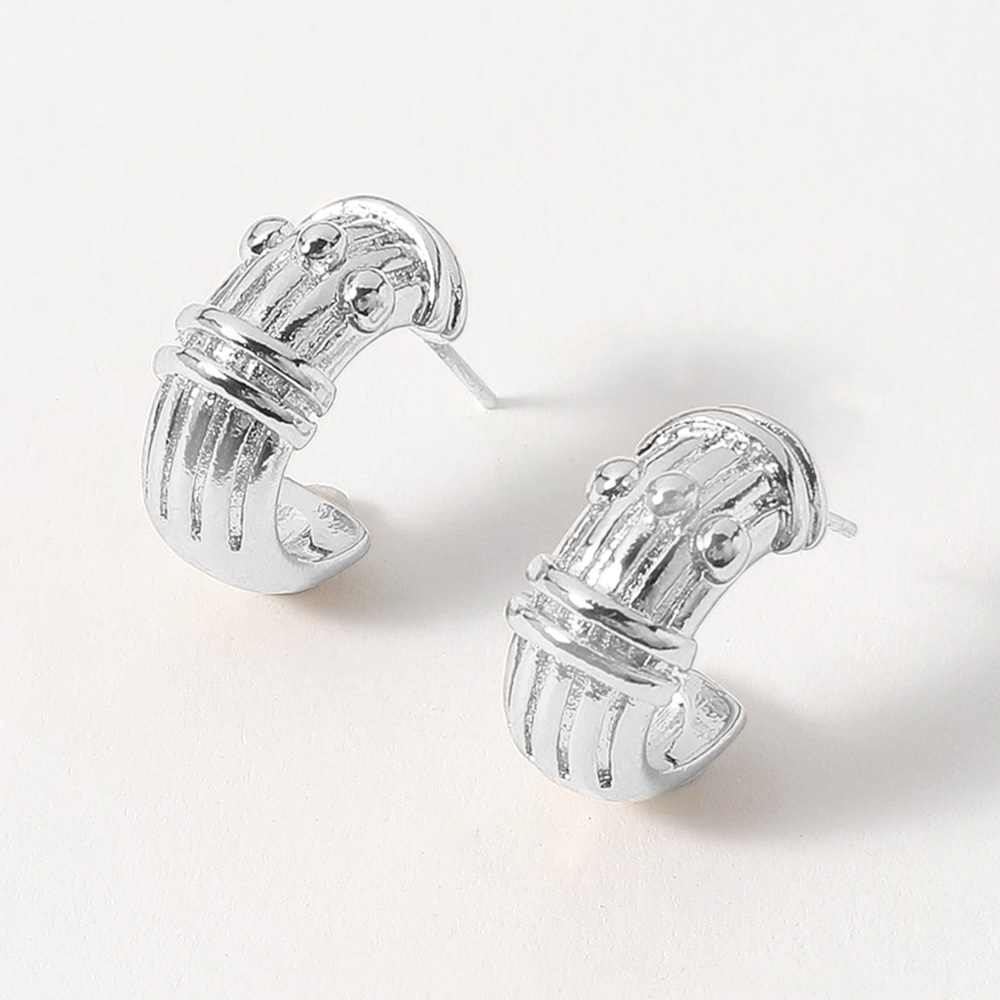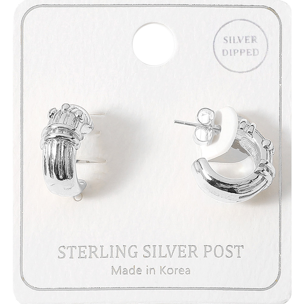 Silver Dipped Sterling Silver Post Textured Hoop Earrings
