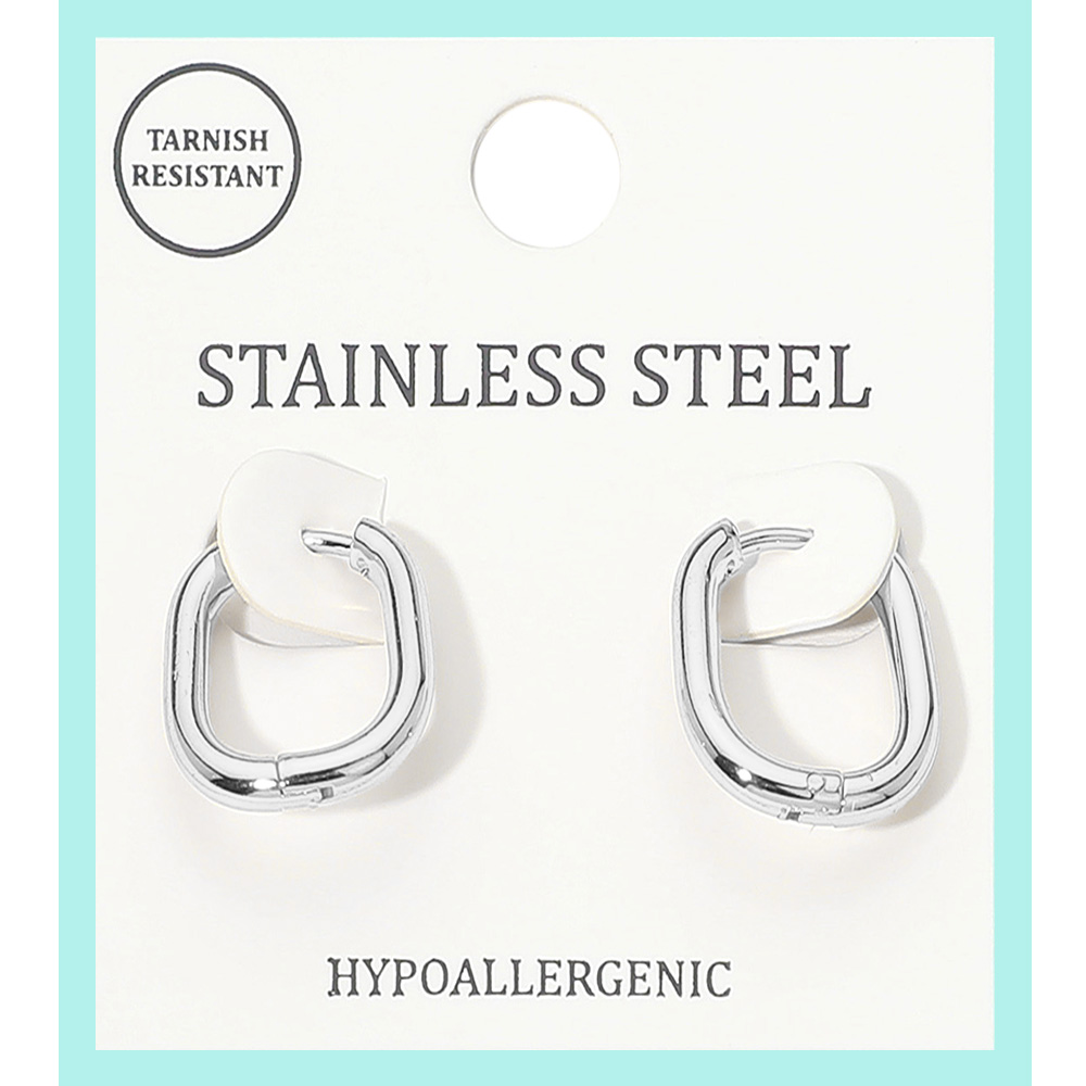 Details • Size : 0.6" X 0.7" • Huggie Back • Tarnish Resistant • Complete your look with these small square hoop earrings crafted in stainless steel. Hypoallergenic and tarnish-resistant, they are designed for all-day comfort and durability. A modern twist on a classic style, making them the perfect versatile accessory for everyday wear or special occasions. • Hypoallergenic • Stainless Steel