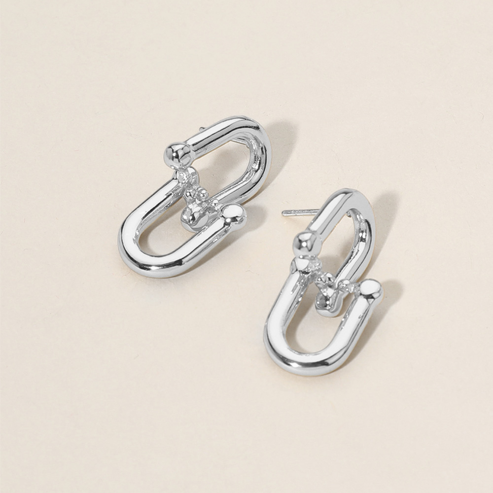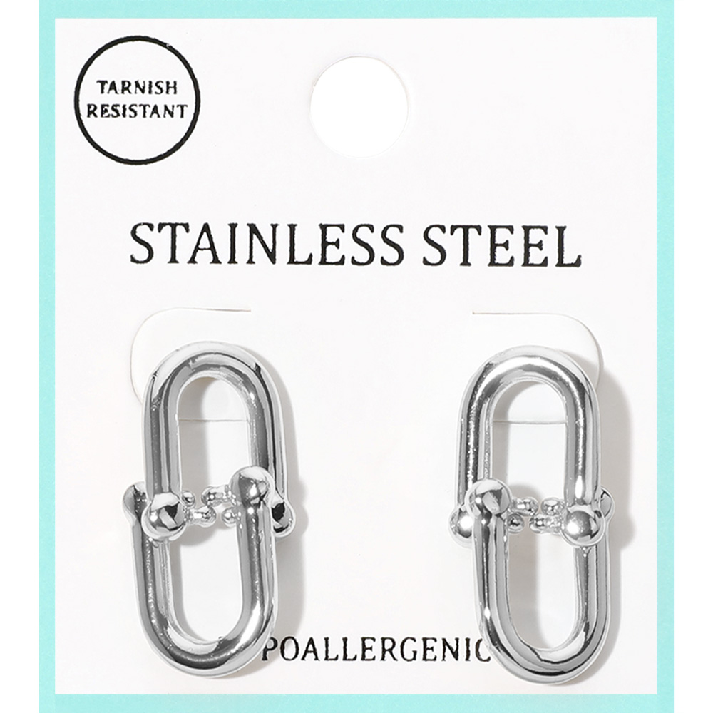 Details • Size : 0.5" X 1" • Post Back • Stylish stainless steel oval link hoop earrings featuring a modern linked design with subtle bead accents. Tarnish resistant and hypoallergenic, these lightweight everyday hoops offer a sleek contemporary look ideal for casual or dressy outfits. • Tarnish Resistant • Hypoallergenic • Stainless Steel