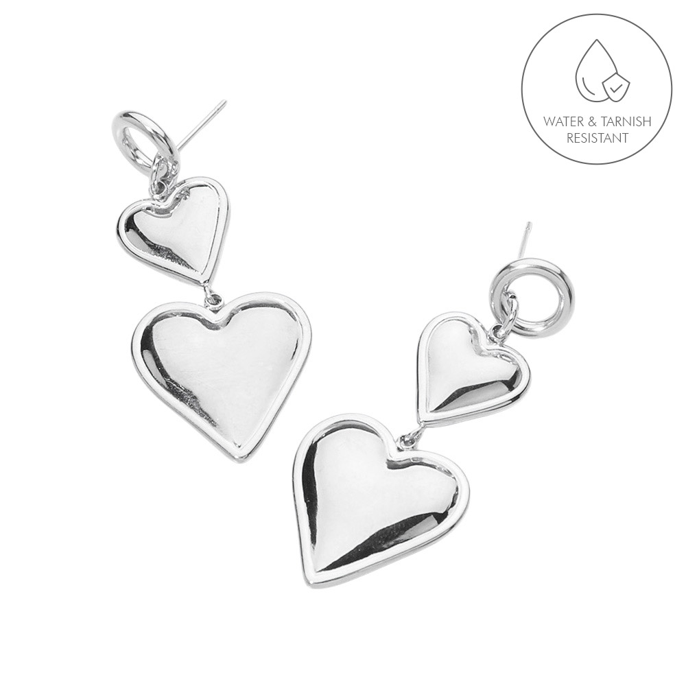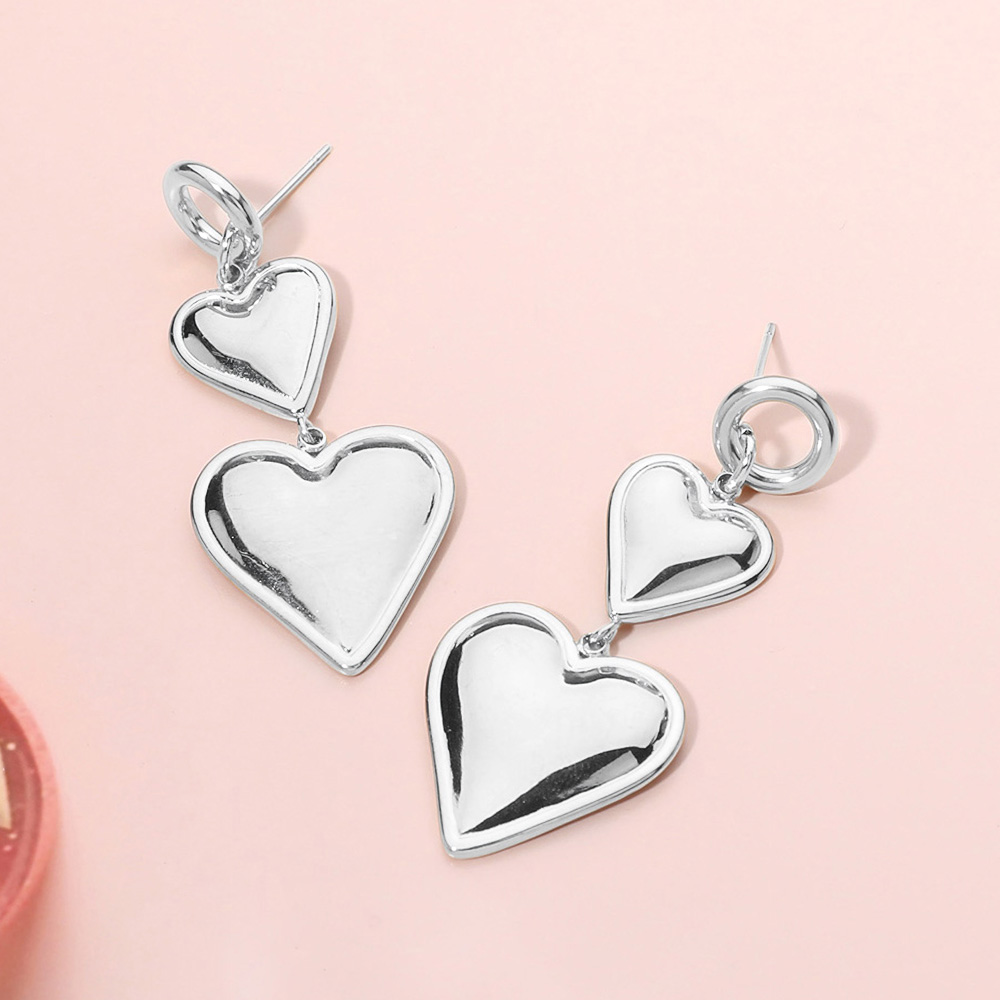 Stainless Steel Heart Plate Link Dropdown Dangle Earrings