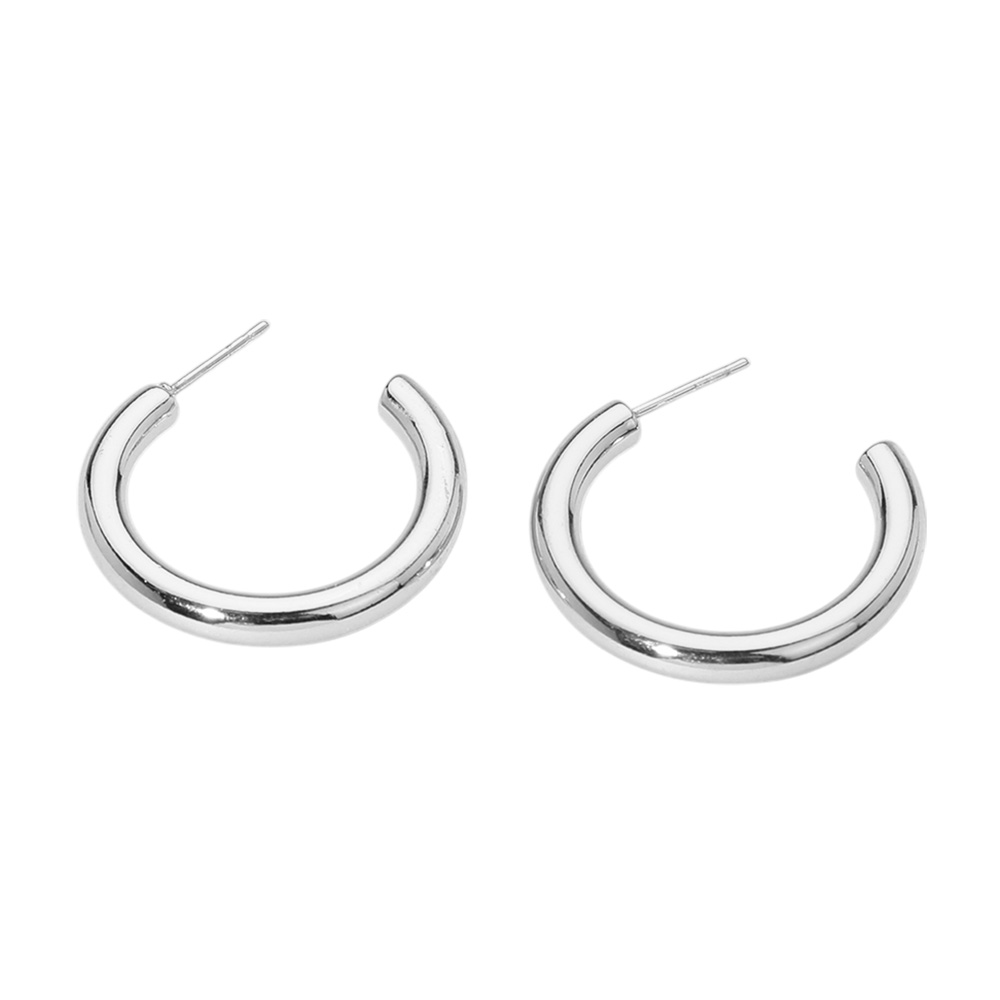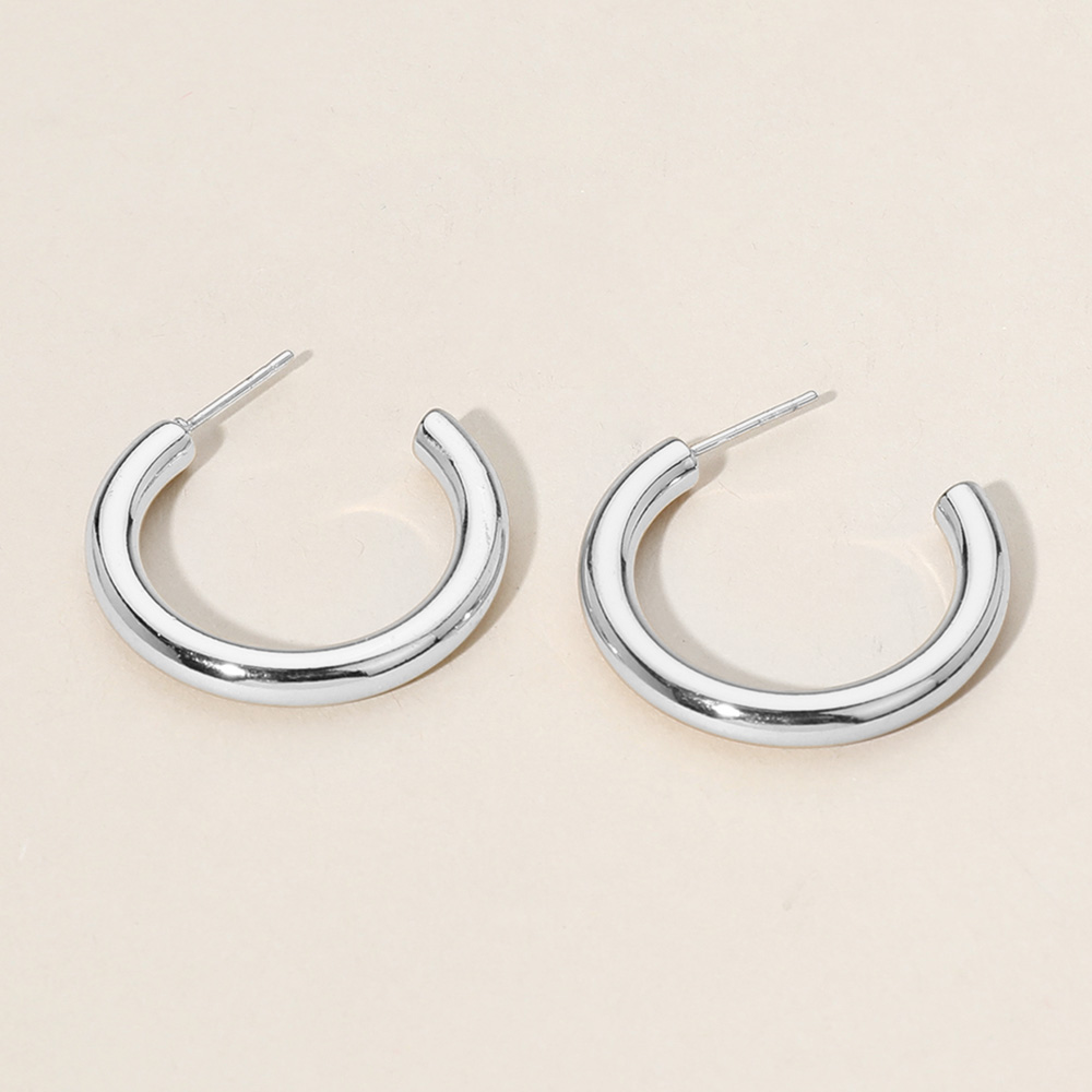 White Gold Dipped CZ Stone Paved Huggie Hoop Earrings