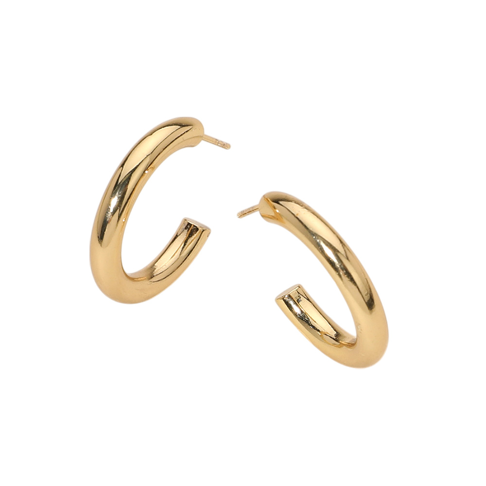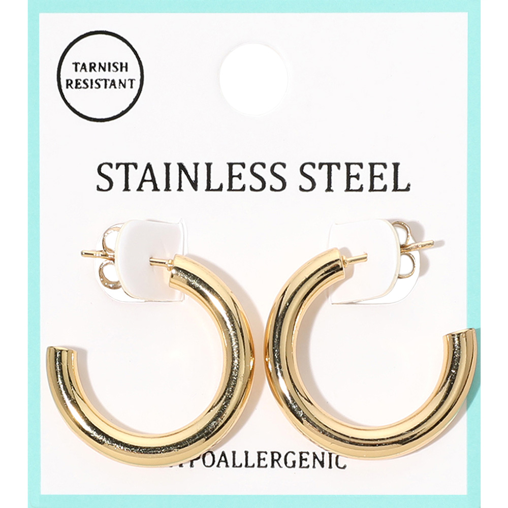 Details • Size : 1" X 1" X 0.2" • Post Back • Bold stainless steel hoop earrings with a sleek, rounded shape for a modern touch. Hypoallergenic and tarnish-resistant, offering comfort, durability, and timeless style for any occasion. • Hypoallergenic • Stainless Steel