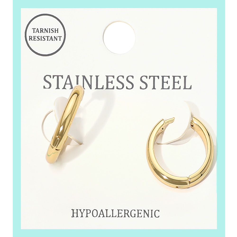 Details • Size : 0.7" X 0.7" • Huggie Back • Tarnish Resistant • Simple yet elegant, these small hoop earrings are made from stainless steel for long-lasting durability. Hypoallergenic and tarnish-resistant, they provide all-day comfort and timeless style. Perfect for everyday wear or adding a sleek finishing touch to professional and evening looks. • Hypoallergenic • Stainless Steel