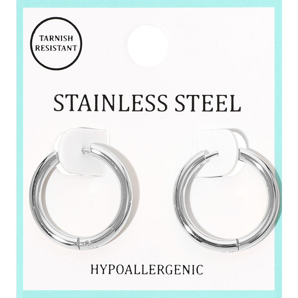 • Elegant stainless steel small hoop earrings designed for all-day wear. Hypoallergenic and tarnish-resistant, offering a timeless, comfortable fit ideal for everyday style and sensitive ears.