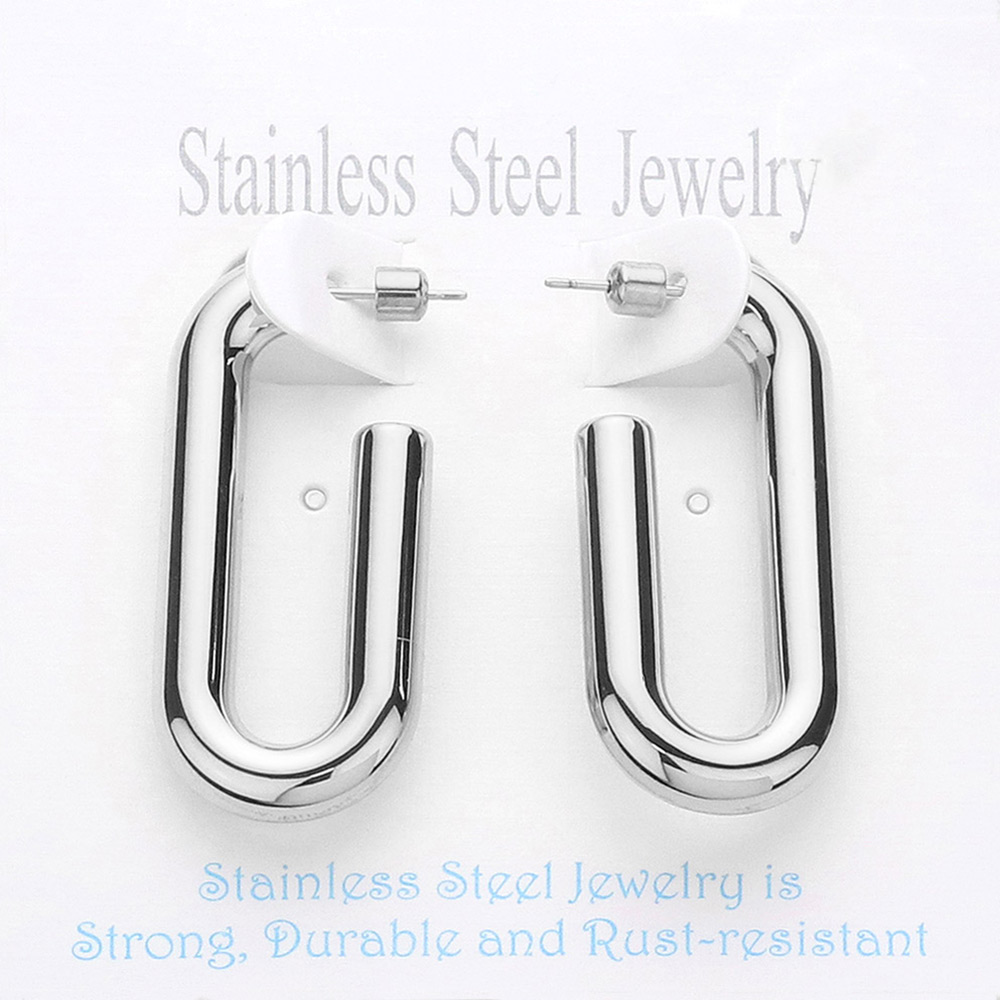 Stainless Steel 2.3 Inch Metal Hoop Pin Catch Earrings