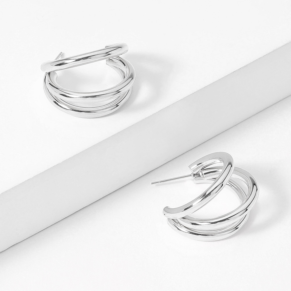 Silver Dipped Chunky Faceted Stone Accent Huggie Hoop Earrings