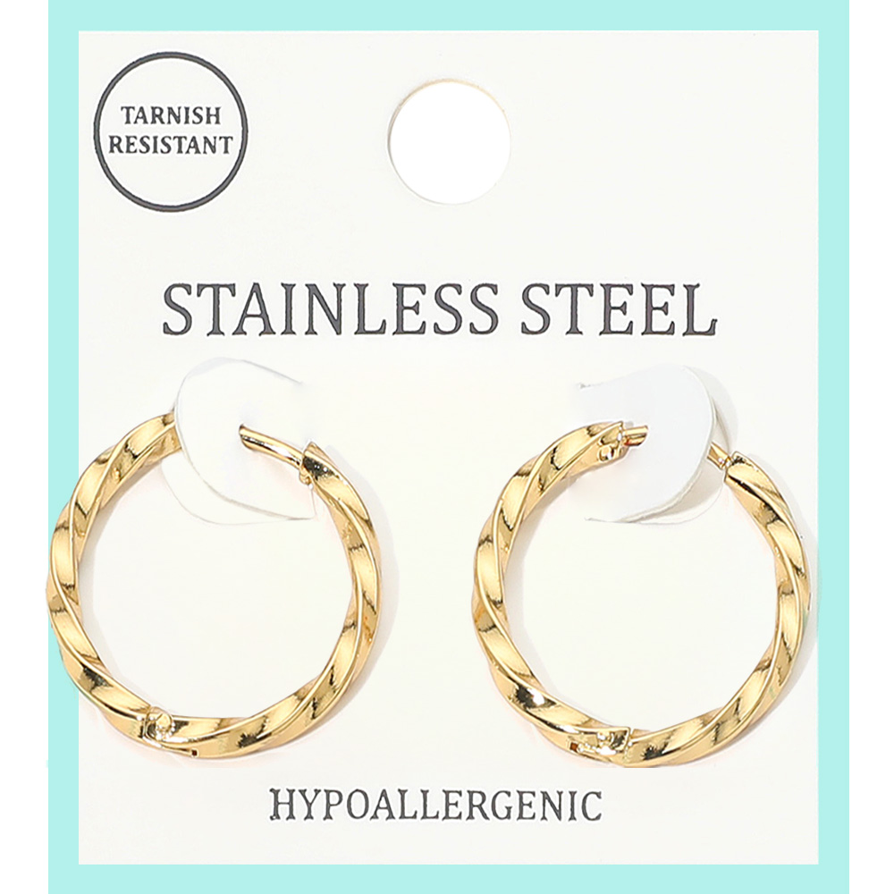 Details • Size : 0.8" X 0.8" • Huggie Back • Tarnish Resistant • These twisted hoop earrings feature a chic, stylish design that adds texture and flair to any outfit. Perfect for elevating both casual and dressy looks, they are lightweight, versatile, and timeless, making them an essential accessory for modern everyday fashion. • Hypoallergenic • Stainless Steel