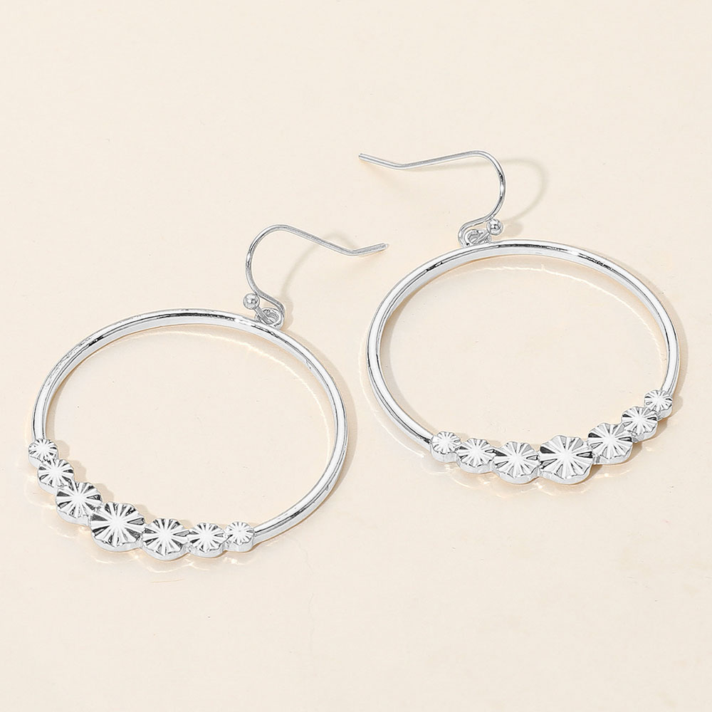 Details • Size : 1.4" X 1.75" • Fish Hook Back • Elegant hoop earrings featuring delicate floral accents for a refined touch. Perfect for adding subtle charm and sophistication to both everyday wear and special occasion outfits. • Lead and Nickel Compliant