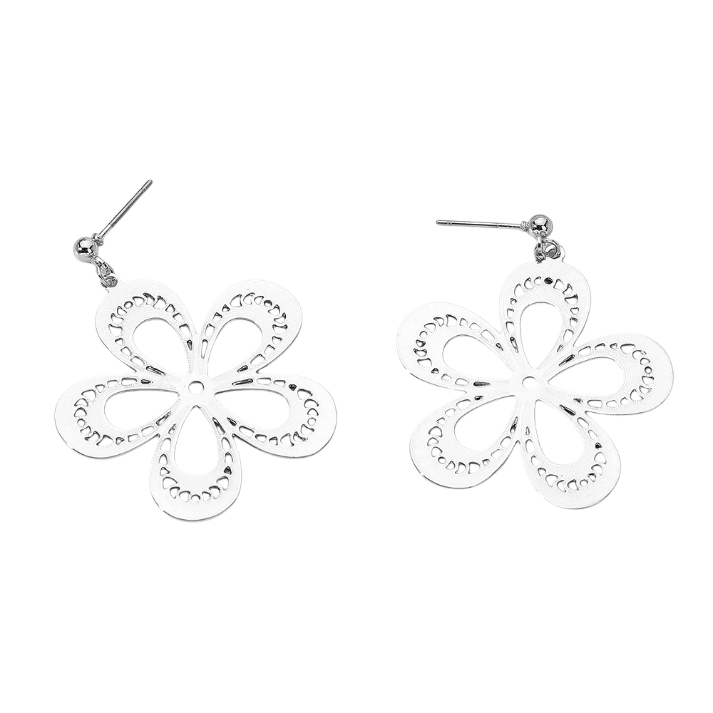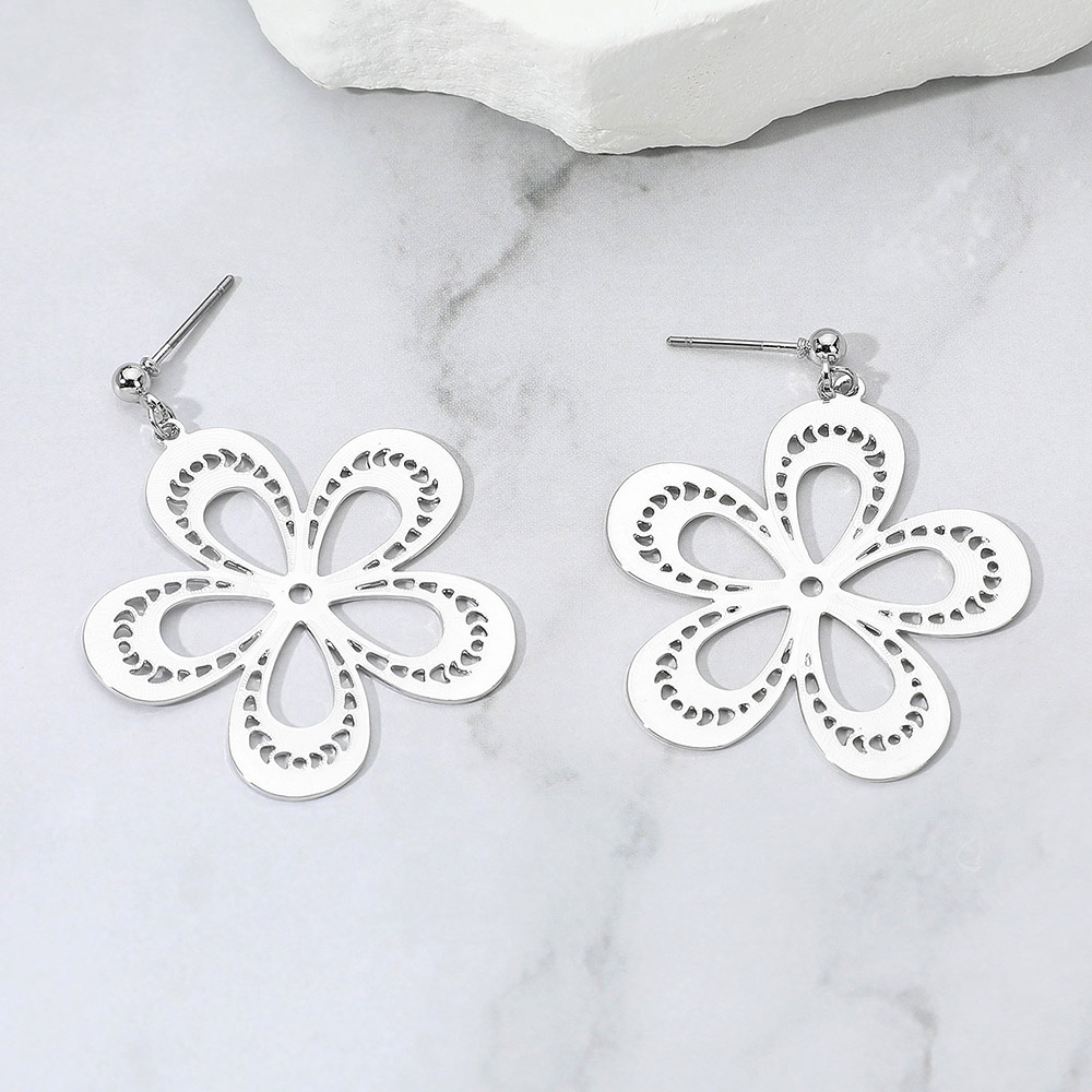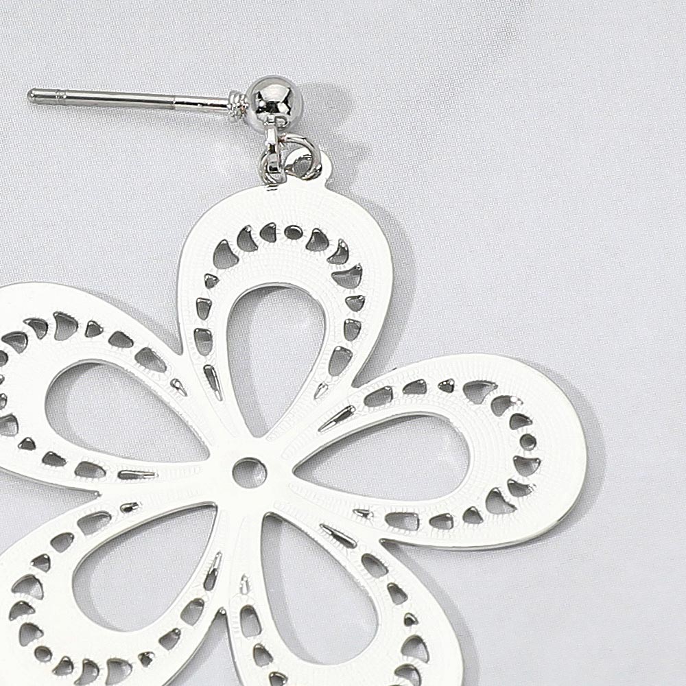Textured Metal Cutout Flower Dangle Earrings