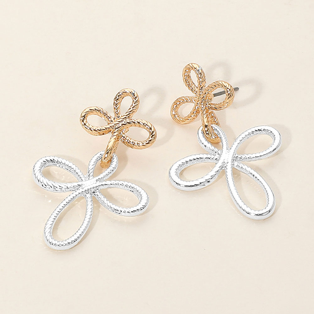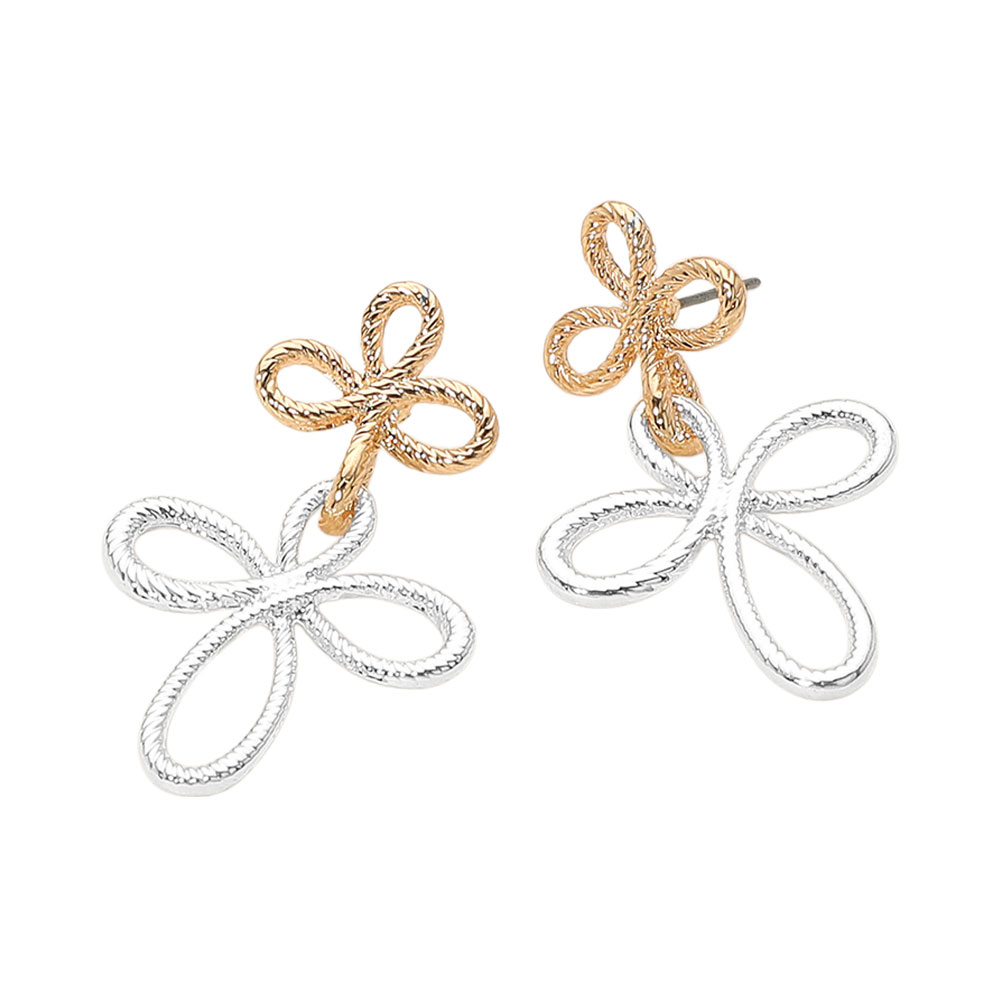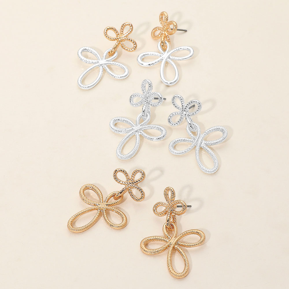 Details • Size : 1.1" X 1.6" • Post Back • Stylish drop earrings featuring a double floral design with intricate textured detailing. Lightweight and eye-catching, these earrings bring a playful yet sophisticated touch to any outfit, perfect for both casual wear and special occasions. • Lead and Nickel Compliant