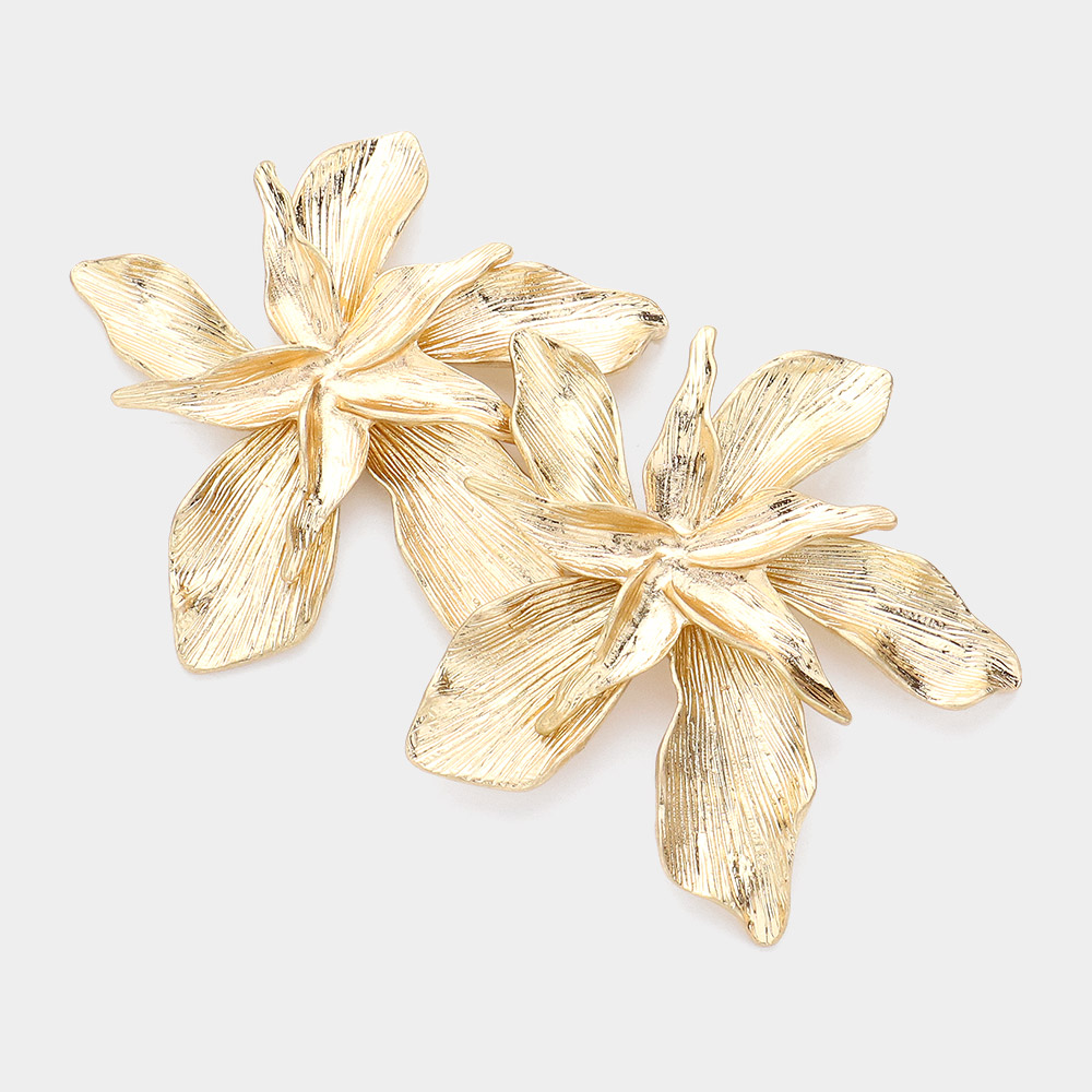 Details • Size : 2.25" X 2" • Post Back • Elevate your style with these bold floral statement earrings, featuring a sculpted petal design that adds depth and drama to any outfit. Perfect for special occasions or standout looks, these earrings offer a touch of natural elegance with artistic flair. • Lead and Nickel Compliant