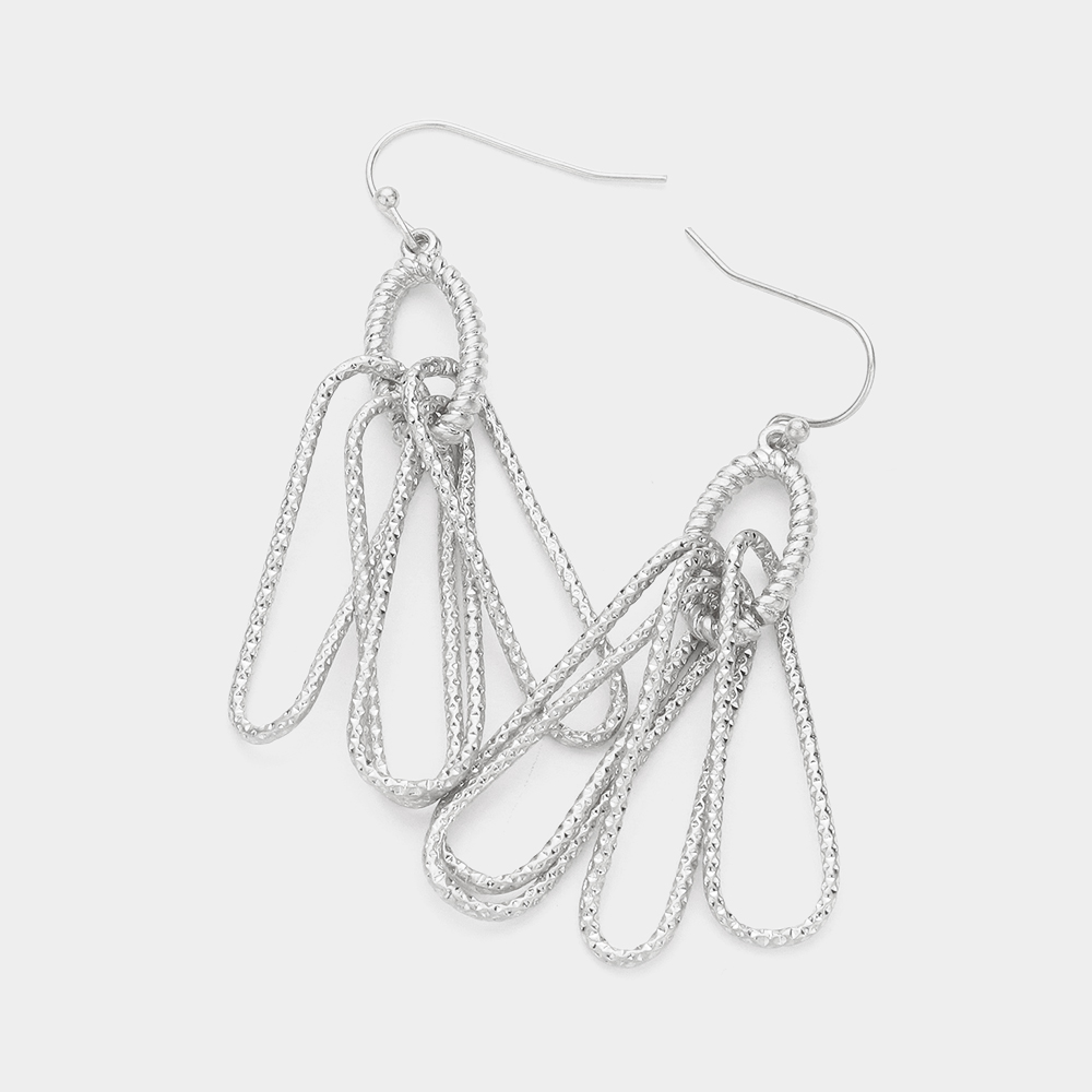 Multi Stone Rectangle Metal Bar Fringe Earrings