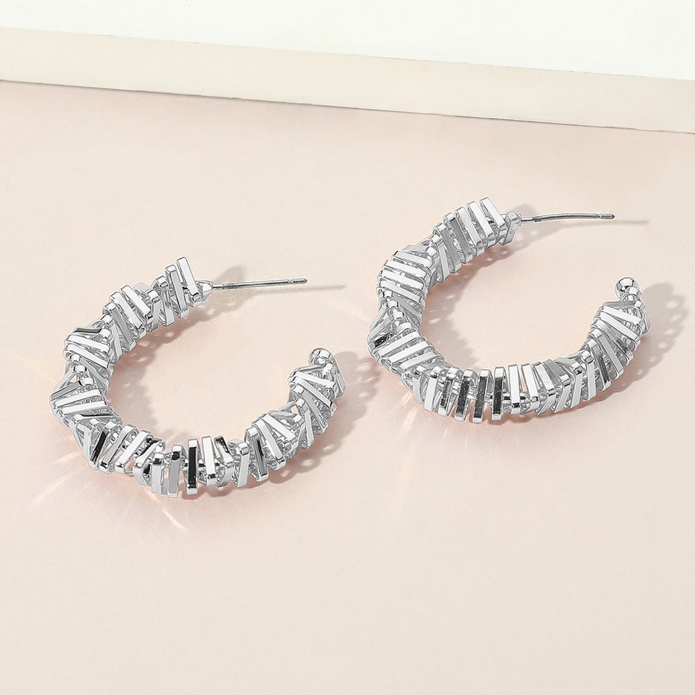Details • Size : 1.3" X 1.3" • Post Back • Elevate your style with these elegant textured hoop earrings. Featuring a chic, modern design that blends sophistication and versatility, they’re perfect for both casual and formal looks. A must-have statement accessory for effortless elegance. • Lead and Nickel Compliant