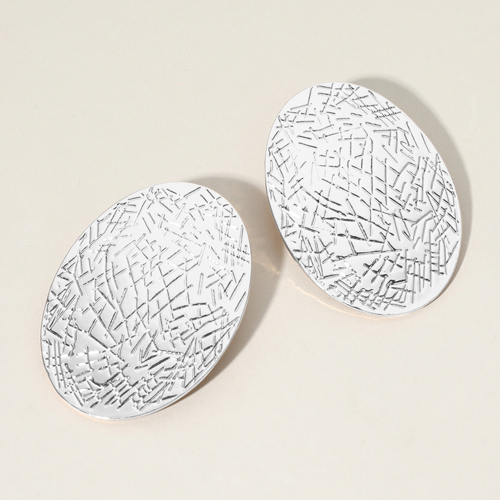 Textured Metal Oval Plate Earrings