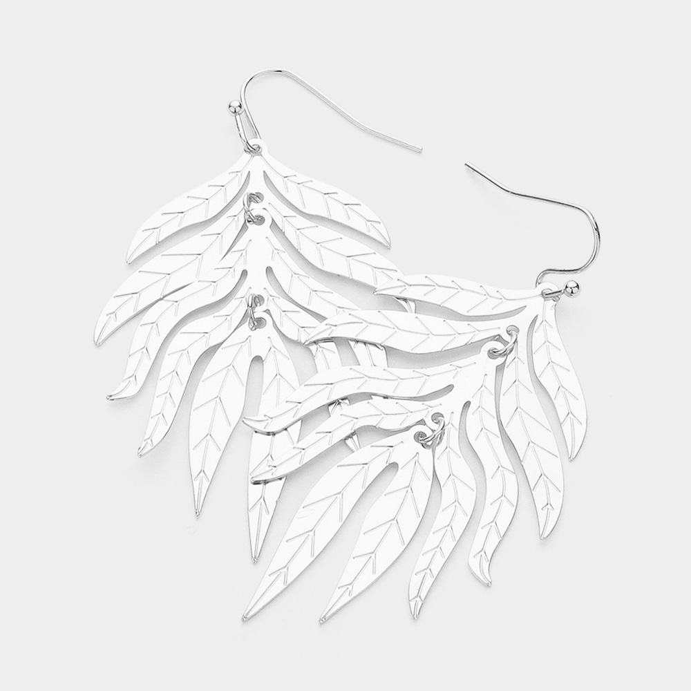 Hammered Metal Double Open Heart Layered Dangle Earrings