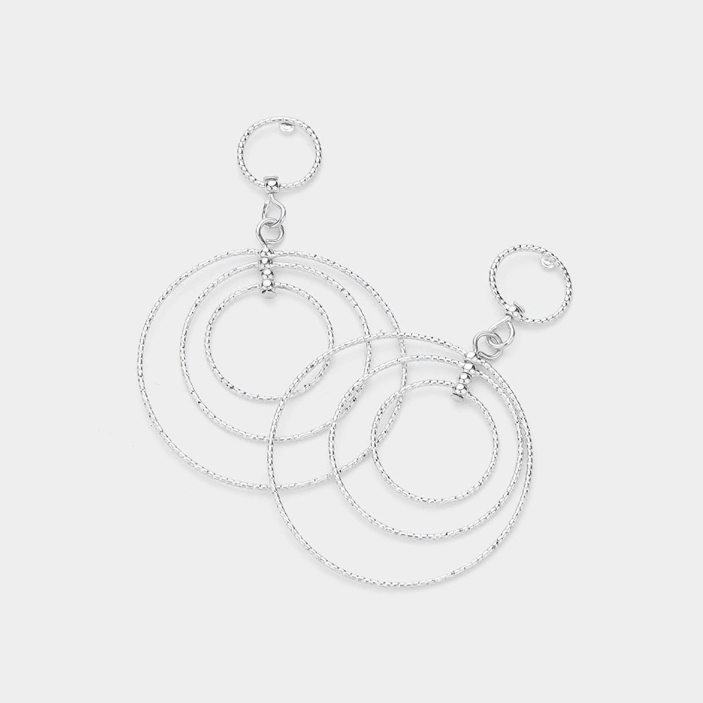 Textured Metal Wire Multi Circle Dangle Earrings
