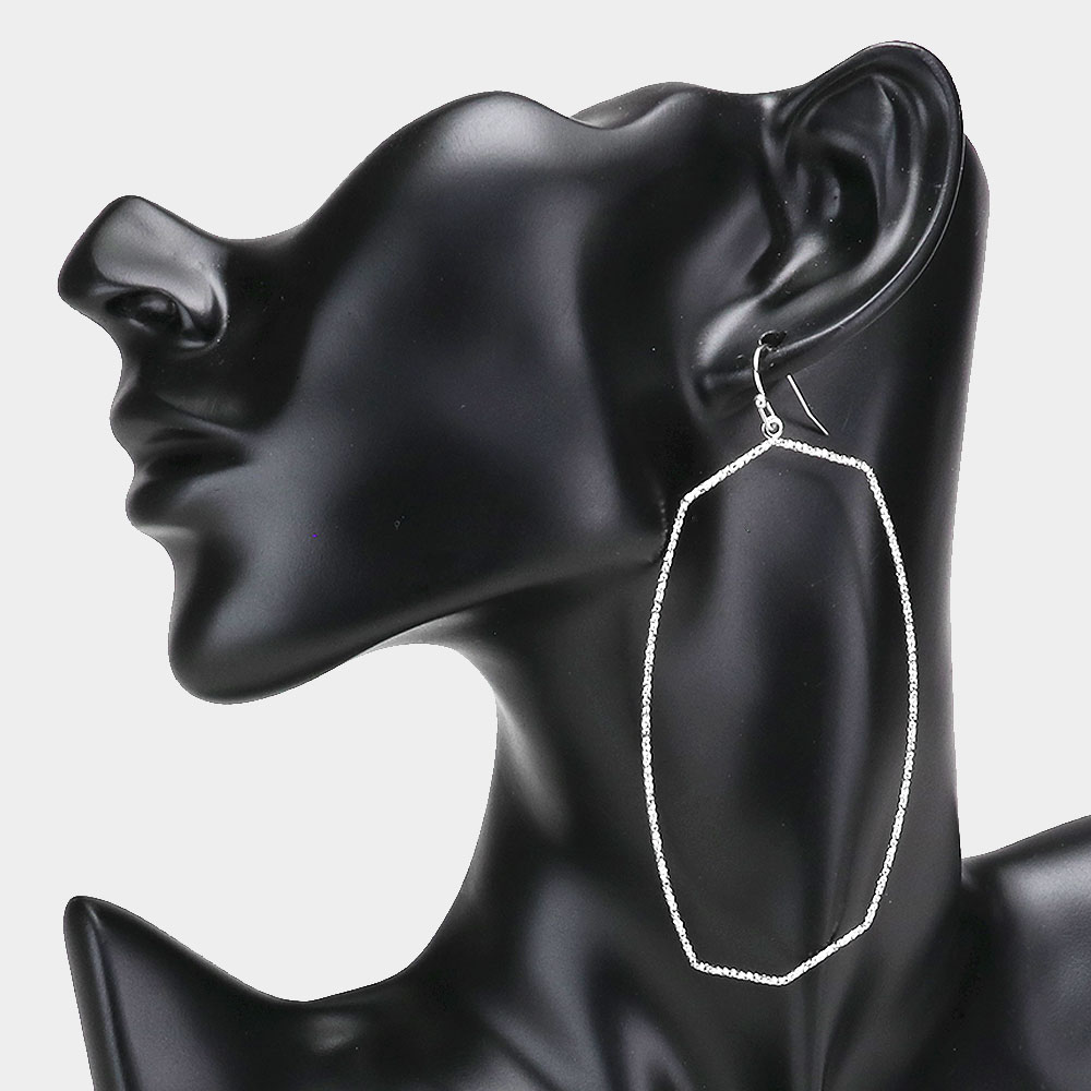 Textured Thin Metal Open Hexagon Earrings