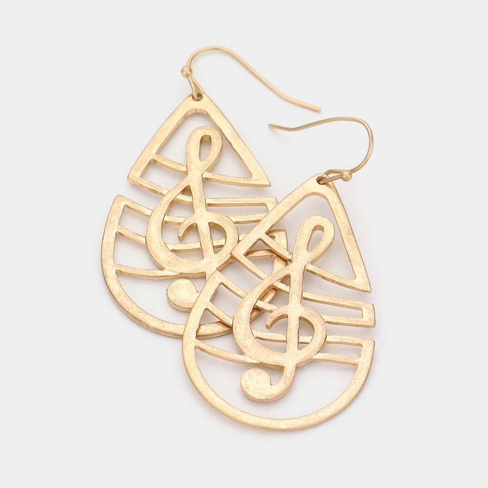 Metal Treble Bass Clef Music Note Dangle Earrings