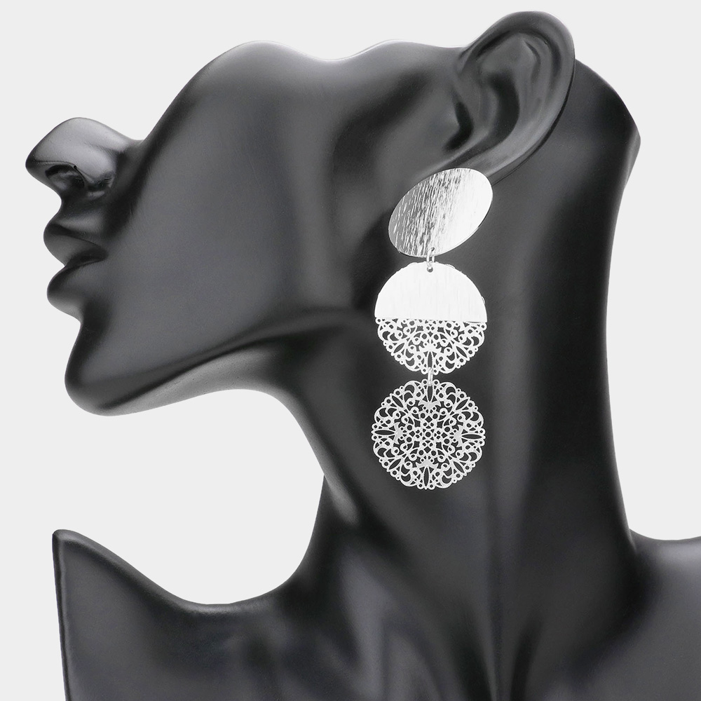 Triple Filigree Round Metal Link Drop Earrings