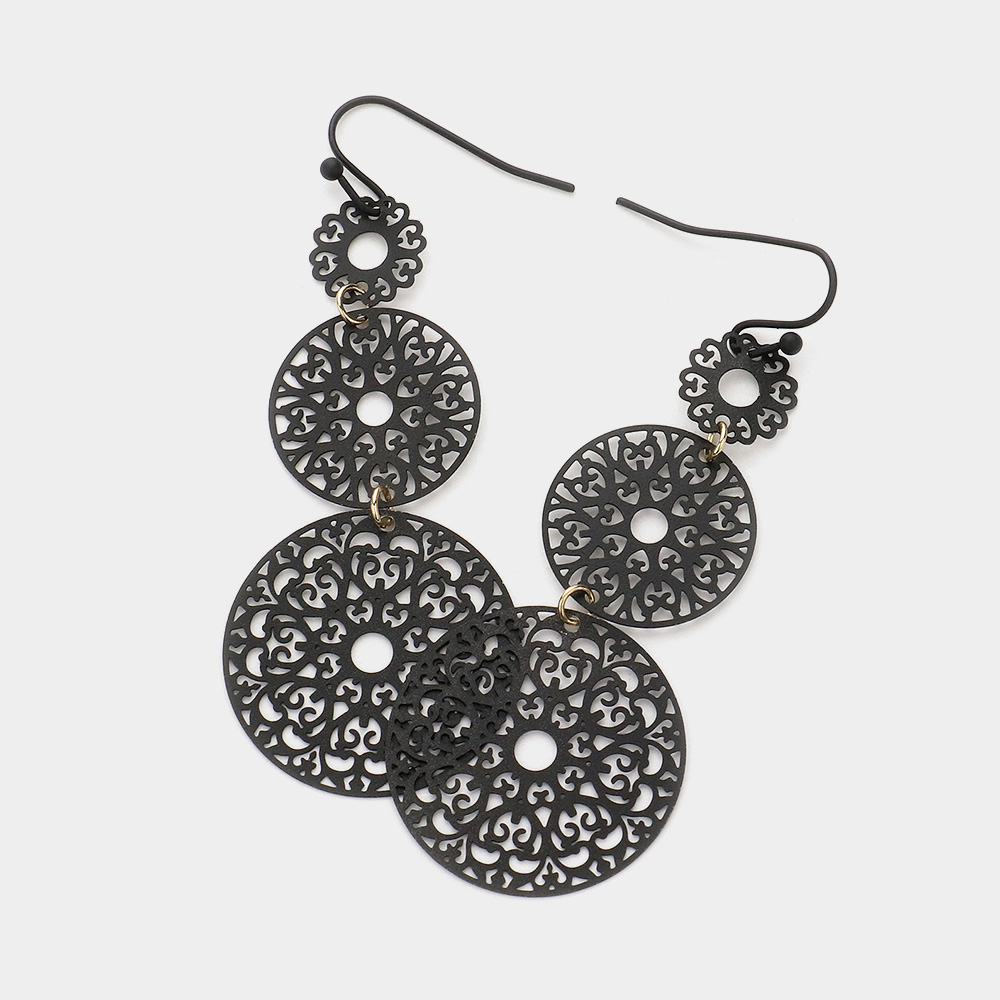 Metal Filigree Disc Link Dropdown Earrings