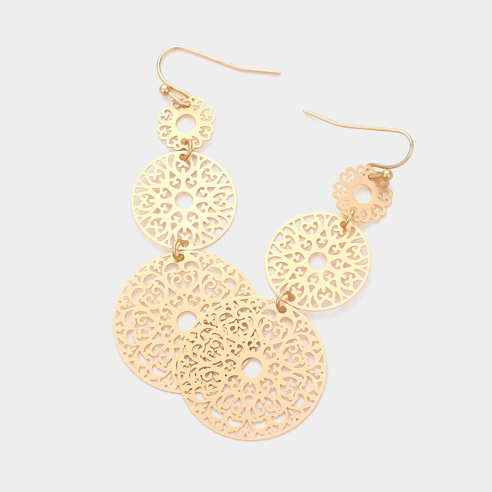 Brass Metal Filigree Round Dangle Earrings