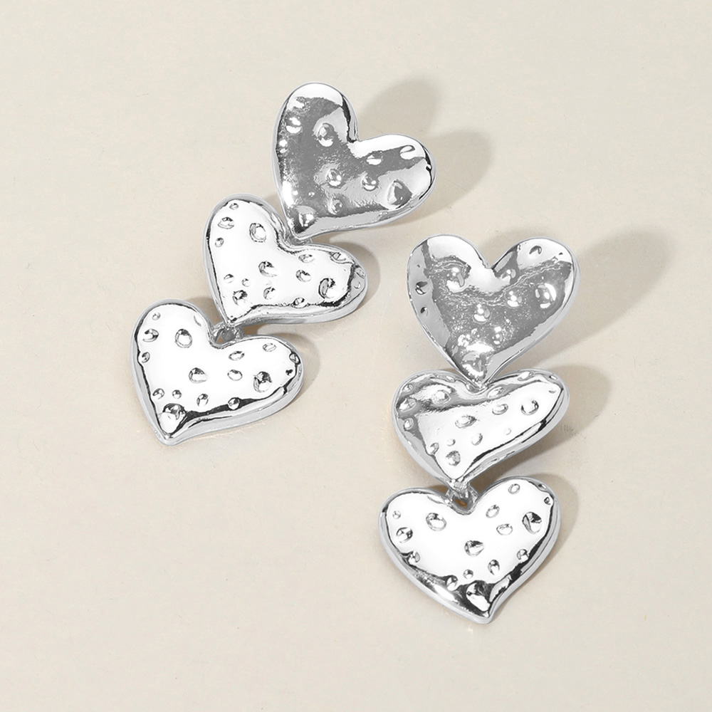 Triple Textured Metal Herat Link Drop Earrings