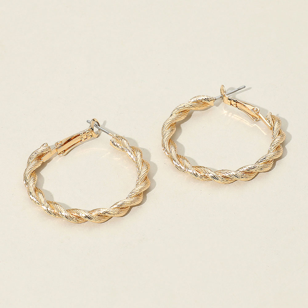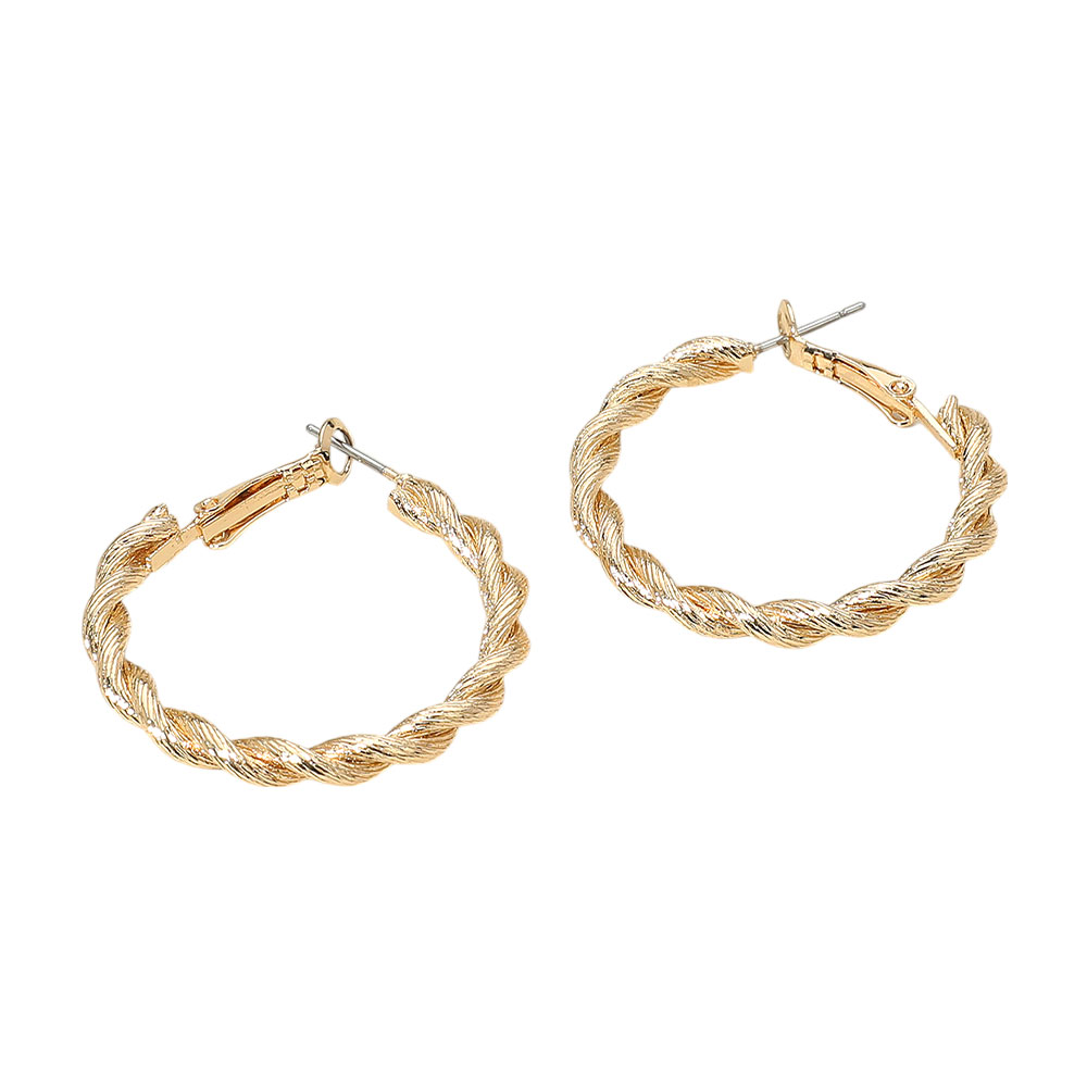 Details • Size : 1.4" X 1.5" • Omega Back • Elegant hoop earrings with a twisted, textured design offering a stylish update to a classic silhouette. Lightweight and versatile for day-to-night wear, perfect for adding a subtle statement to any outfit. • Lead and Nickel Compliant