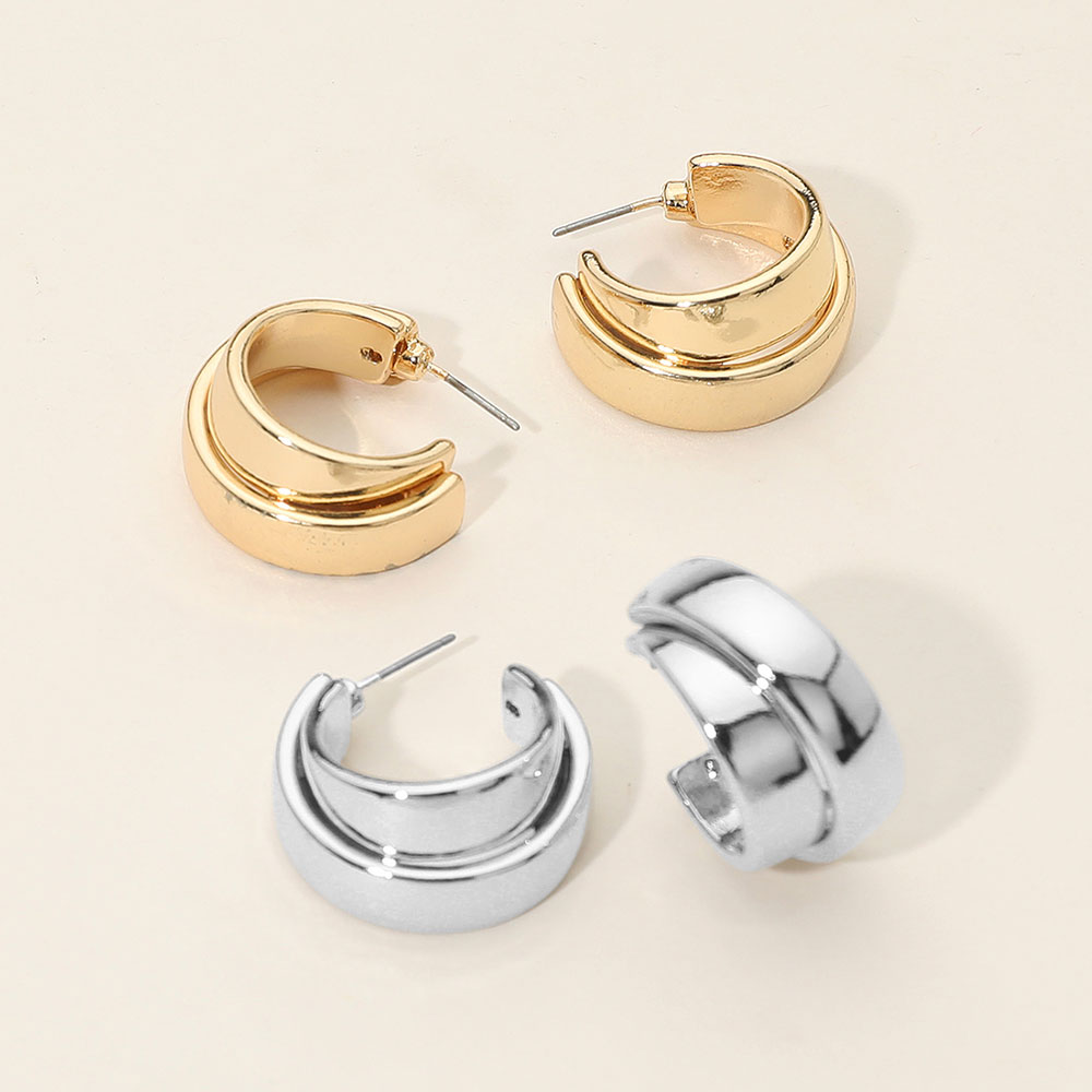 Details • Size : 1" X 1" X 0.6" • Post Back • Bold and modern, these wide hoop earrings feature a polished finish and dimensional curved design. A chic accessory to elevate both casual and formal outfits with contemporary style and striking contrast. • Lead and Nickel Compliant